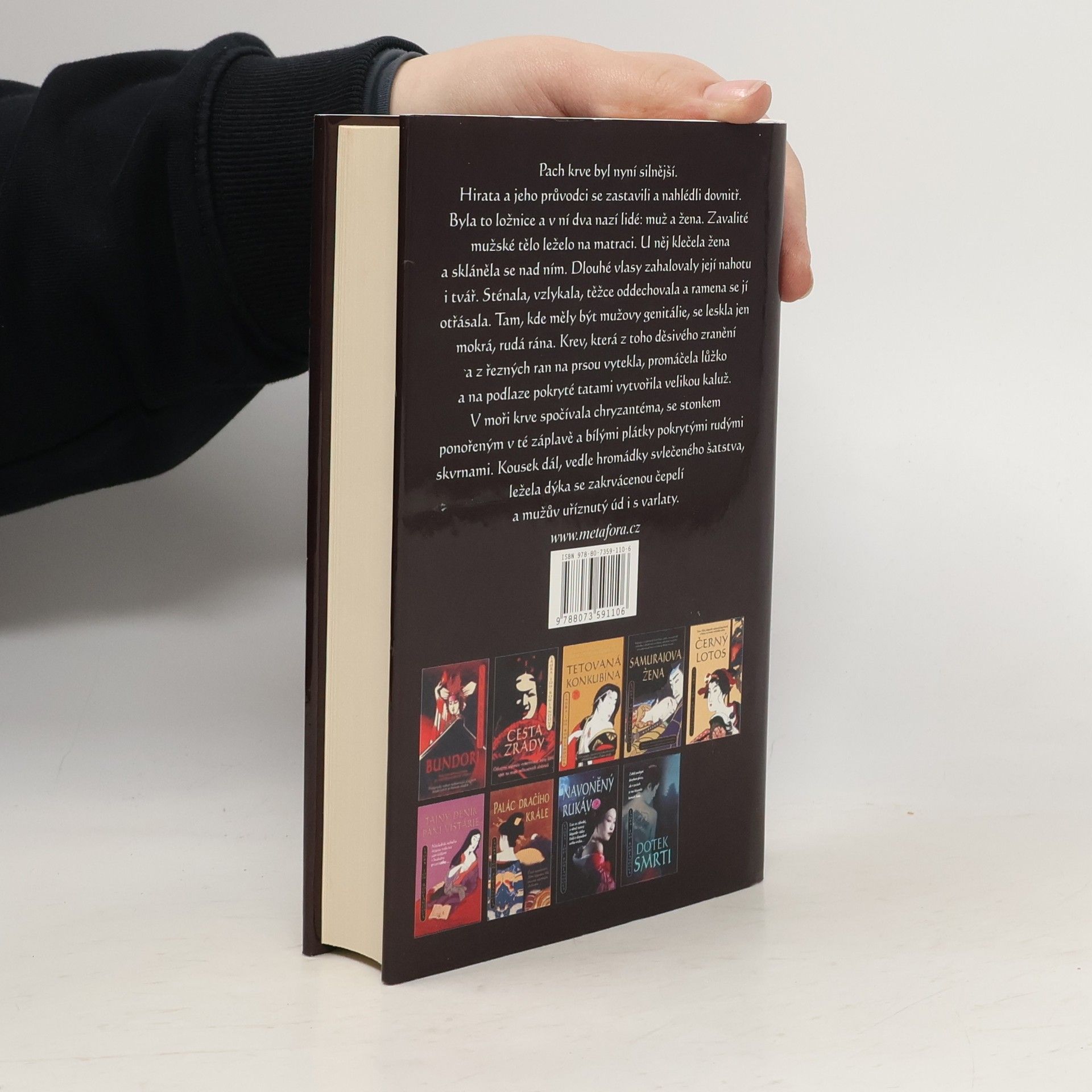 Japonsko roku 1698. Samuraj Sano Ičiró je falešně obviněn z velezrady. A aby toho nebylo málo, dopadne další drtivá rána. Vedle obnažené, vykastrované mrtvoly mocného muže je nalezena, rovněž nahá, Sanova těhotná manželka Reiko. Ta ovšem tvrdí, že pán Mori, z jehož vraždy je vzápětí obviněna, zneužíval a zabíjel malé chlapce a že do jeho domu se vloudila proto, aby ho usvědčila. Dál už ji ale mysl zrazuje a kreslí jí přízračné obrazy její vlastní nevěry a odporných detailů vraždy. Sanovi nepřátelé nyní útočí na oba současně, takže se zdá, že před popravištěm už je nikdo a nic nezachrání. Nebyl by to ale Samo Ičiró, aby se přes vlastní pochybnosti nevrhl do boje a nepokusil se zachránit sebe, svou ženu i jejich nenarozené dítě. Jedenáctá kniha historické detektivní série Sano Ičiró.