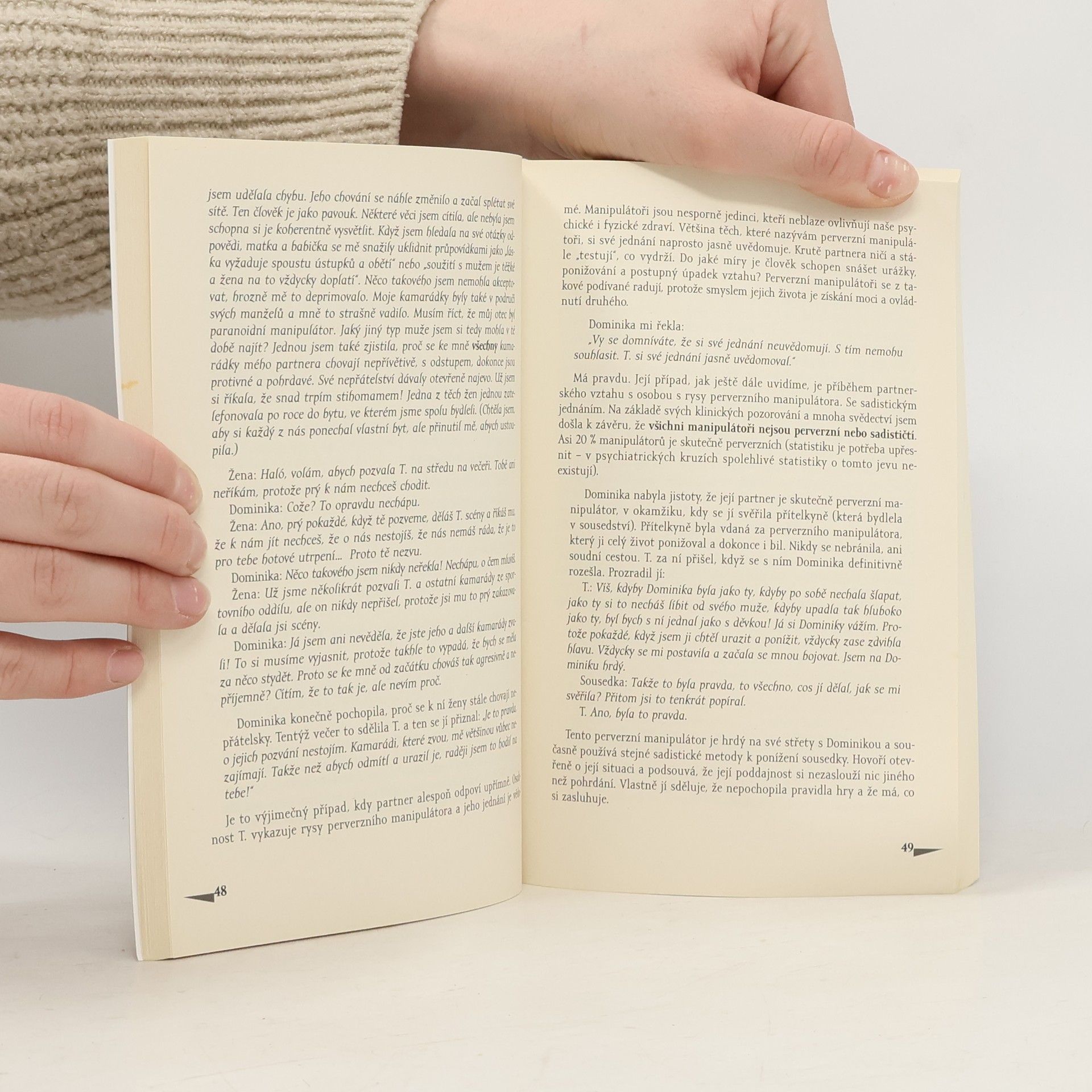 Tématem nové knihy autorky, jejíž kniha Nenechte sebou manipulovat zaujala i české čtenáře, je opět manipulace, tentokrát v partnerských vztazích. Autorka opět vychází ze své terapeutické praxe a na mnoha konkrétních příbězích partnerských dvojic ukazuje různé způsoby systematické manipulace i to, jak se vyvíjí v různých fázích partnerského vztahu a jaké jsou její psychické, fyzické i sociální důsledky. Některé příběhy prolínají celou knihou a autorka na nich dokumentuje, jak se projevuje patologie osobnosti, která používá systematicky manipulace uvnitř partnerského vztahu. Nabízí rady a podněty k řešení (Co dělat), ukazuje možnosti komunikace. Popisuje i průběh dialogu s manipulátorem a ukázky takových dialogů.