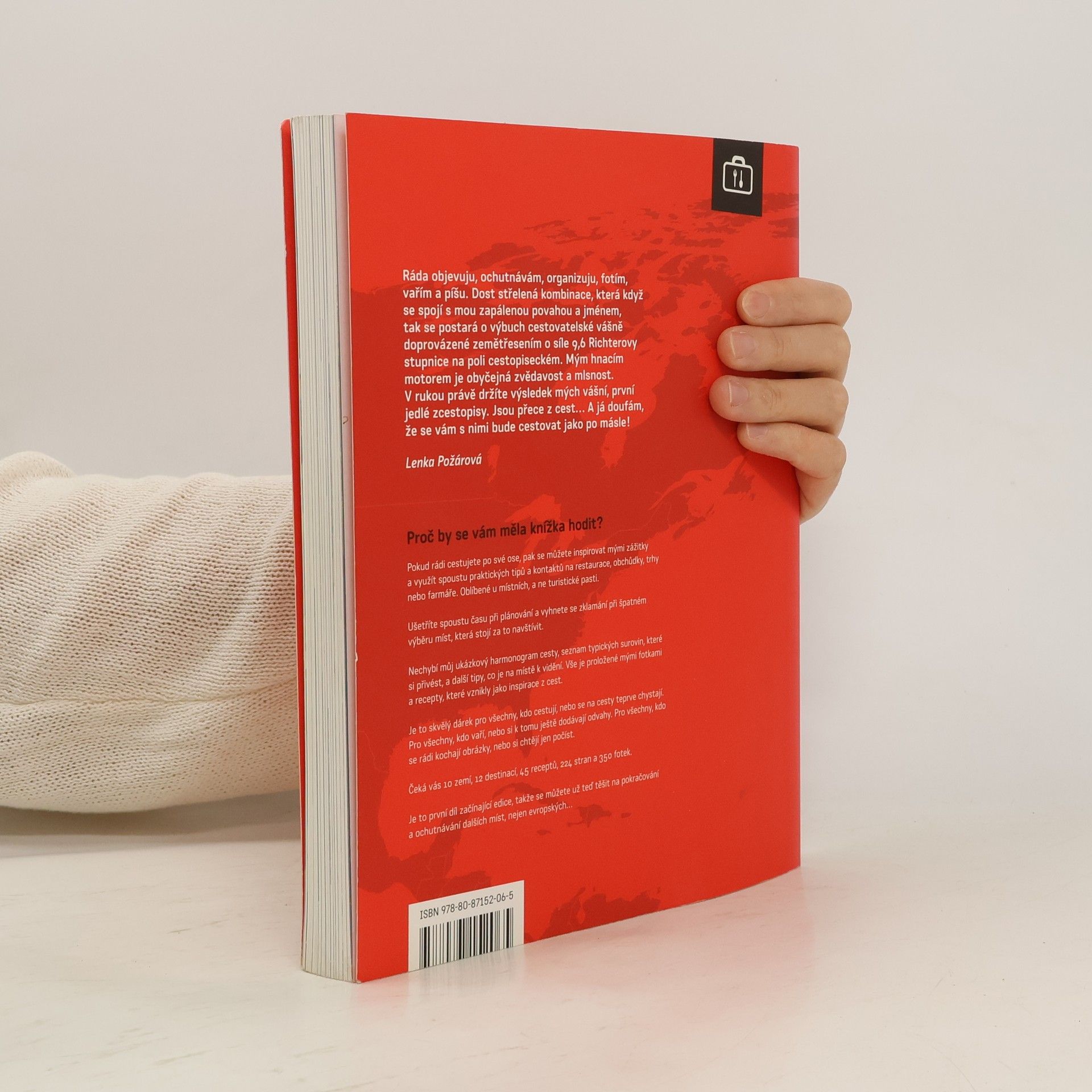 Zapálená kuchařka Lenka Požárová má několik nezkrotných vášní. Cestování, vaření, focení, poznávání a psaní. Když toto všechno zkombinovala se svou precizností a smyslem pro detail, vznikla unikátní autorská knížka „Jak jsem proje(d)la svět“. Je to současně čtivě psaný cestopis, kulinární průvodce, kuchařka s originálními recepty vzniklými na základě cestovatelské inspirace (nikoli opsanými) i bohatá fotokniha. Nechybí spousta informací kdy, kam a proč. Uvedeny jsou jen místa, která autorka sama navštívila a připojeny jsou všechny kontakty na navštívené restaurace, obchůdky, farmy či tržiště v Provence, Curychu, Vídni, Miláně, Budapešti, Istanbulu, Mnichově, Kodani, Malmö, Belgii, Štýrsku nebo Apulii. S knížkou ušetříte čas vyhledáváním typických míst, která mají rádi místní, a vyhnete se turistickým pastem z běžných turistických průvodců.