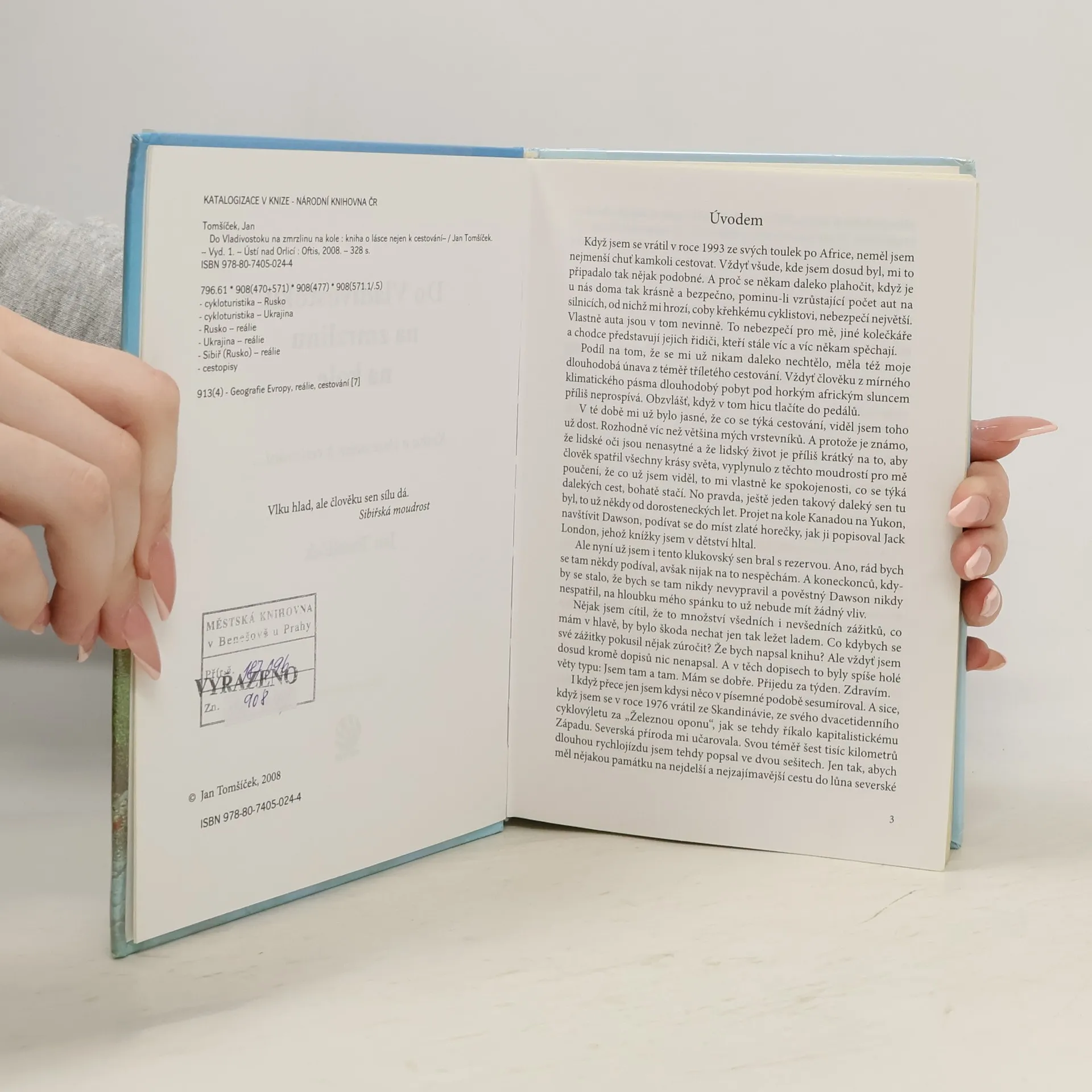 Tomšíčkova pátá kniha o cestování po různých kontinentech pochopitelně ne jinak něž na kole. Tentokrát se očima autora podíváme do Volgogradu, na Ural, Sibiř, abychom letmo zahlédli Omsk a Novosibirsk, překonáme mnoho potoků a řek, z těch největších Ob, Jenisej a Lenu. Po mizerných cestách se dostaneme k Bajkalu a pak přes Dálný východ do Komsomolska na Amuru a podél řeky Ussuri až do Vladivostoku. Během sedmi měsíců celkově strávených na této bezesporu velkolepé cestě autor našlapal na svém 30 let starém favoritu asi 22 000 kilometrů, a ještě se k tomu svezl asi 3000 kilometrů vlaky.