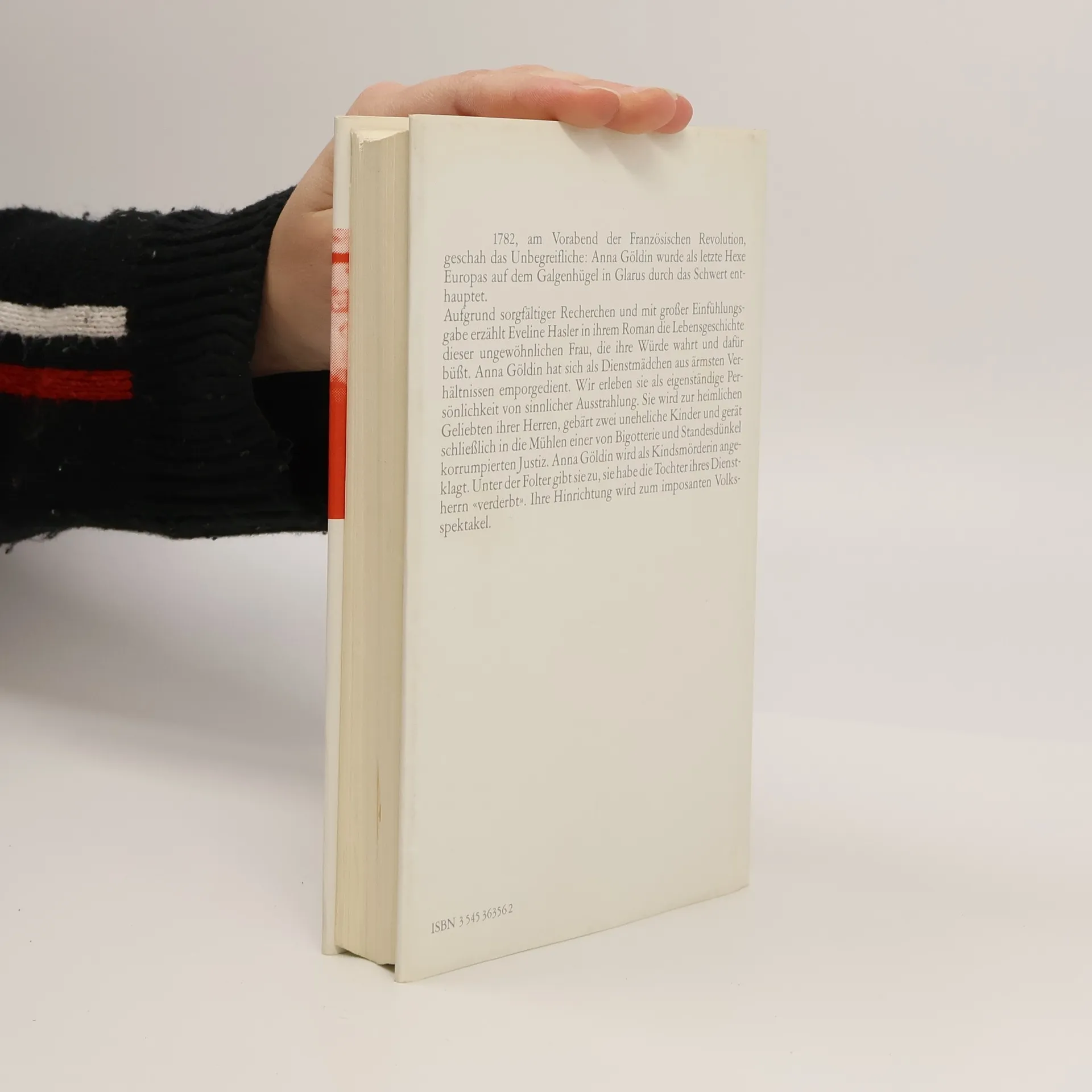 Eveline Haslers Roman über die letzte Frau, die in Europa als Hexe hingerichtet wurde, ist in der Schweiz ein Klassiker. 1743 wird Anna Göldin als Kind armer Bauern geboren. Die Eltern sterben früh, Anna wird Dienstmagd, geschwängert und, weil der uneheliche Säugling kurz nach der Geburt stirbt, wegen Kindsmord verurteilt. Nach Verbüßen ihrer Strafe findet Anna Arbeit bei der Familie von Regierungsrat Tschudi. Als eine Tochter Tschudis Stecknadeln spuckt, wird die Magd beschuldigt, sie verhext zu haben. Göldin flieht ins Toggenburg, wird steckbrieflich gesucht, verraten und schließlich verhaftet. Unter Folter gesteht sie, die Kräfte des Teufels zu nutzen. 1782 wird sie hingerichtet. Eindringlich und einfühlsam hat Eveline Hasler das Leben der unglücklichen Frau zu einer Geschichte gestaltet, die niemanden kaltlässt.