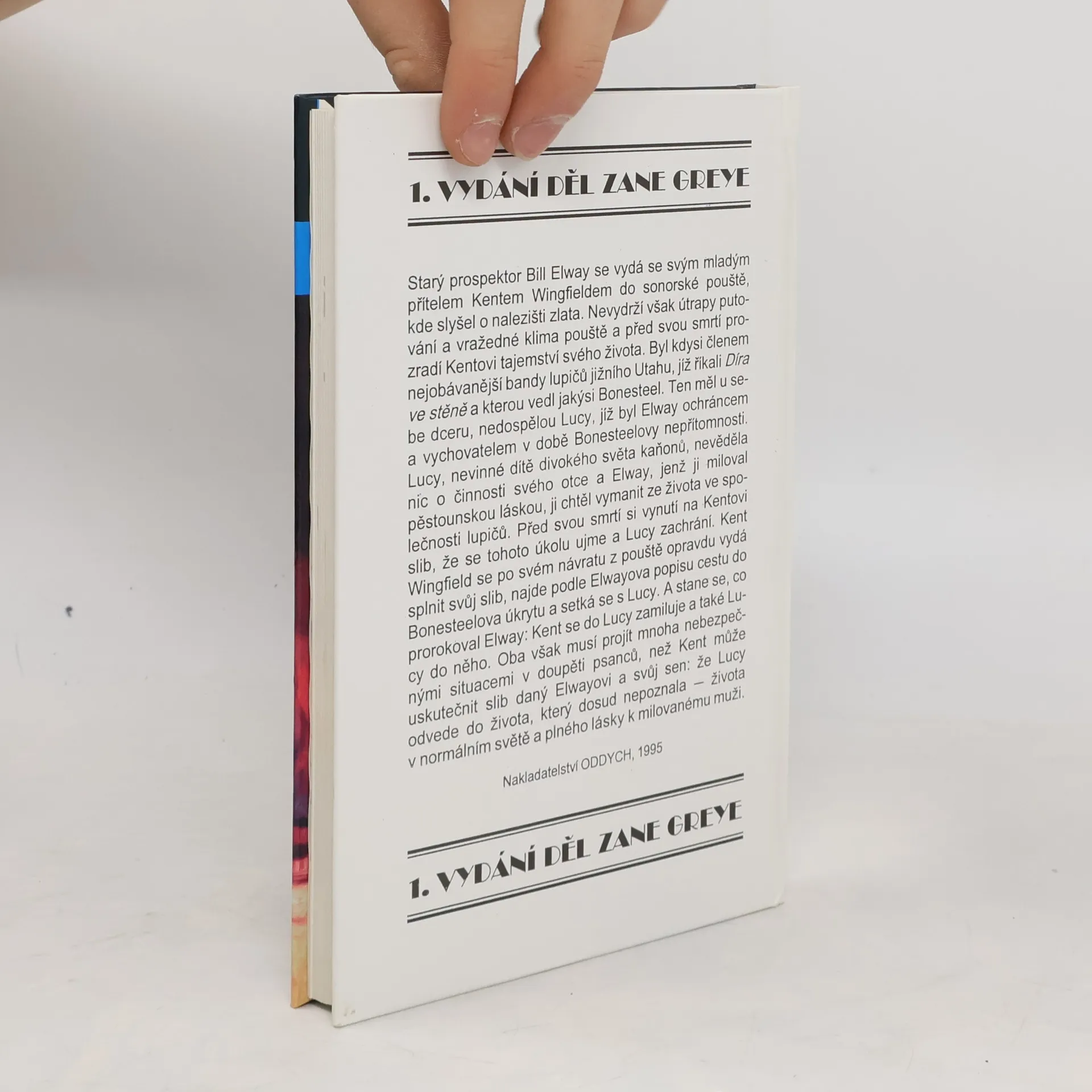 Starý prospektor Bill Elway se vydá se svým mladým přítelem Kentem Wingfieldem do sonorské pouště,kde slyšel o nalezišti zlata. Nevydrží však útrapy putování a vražedné klima pouště a před svou smrtí prozradí Kentovi tajemství svého života. Byl kdysi členem nejobávanější bandy lupičů jižního Utahu, jíž říkali Díra ve stěně a kterou vedl lupič zvaný Bonesteel.