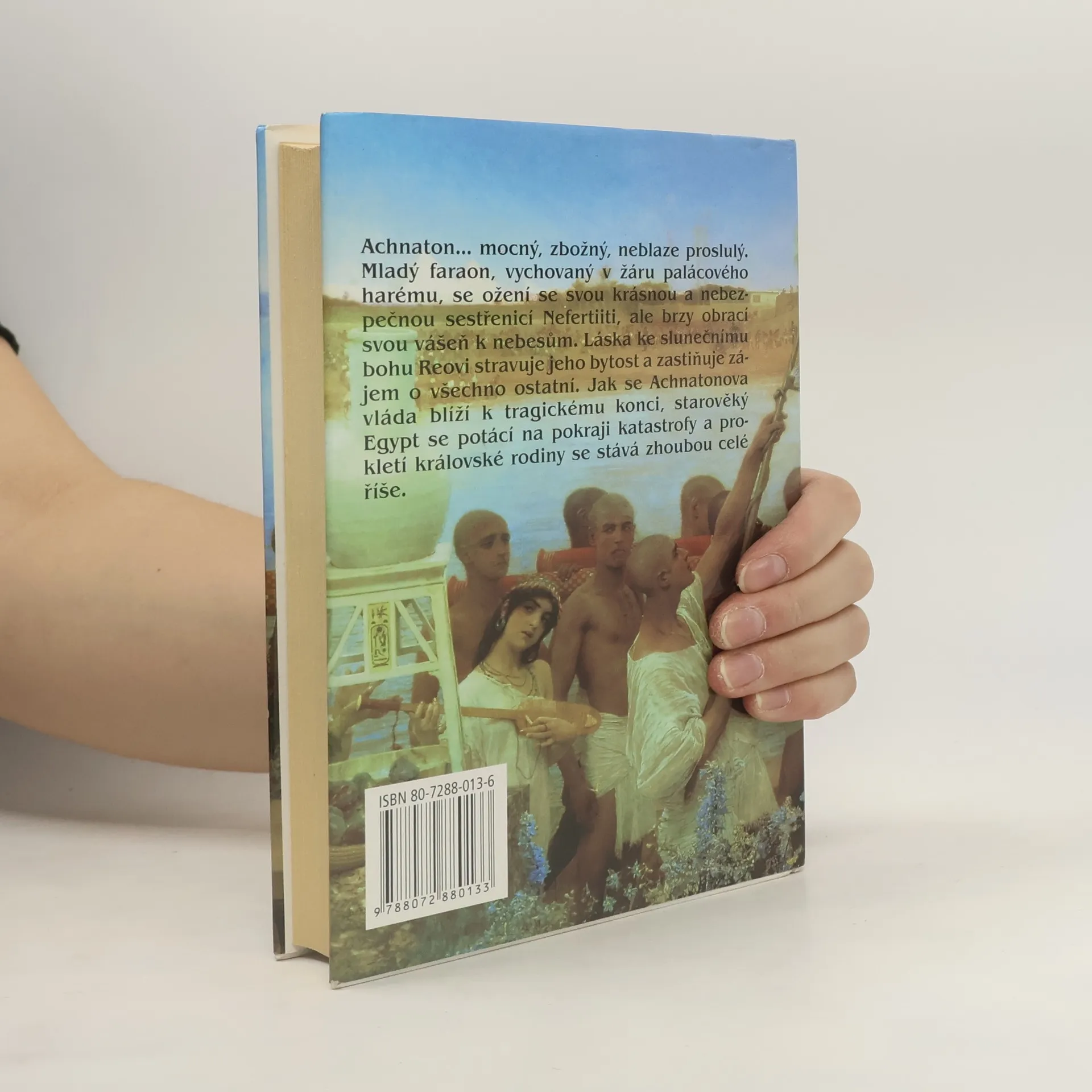 Další z egyptských románů známé kanadské autorky nabízí děj, situovaný tentokrát do období vlády faraona Amenhotepa III. a jeho manželky Teje. Velmi barvitě popisuje nejen život na vladařově dvoře, ale i intriky o následnic- tví po faraonově případné smrti. V této době se v Egyptě kladl velký důraz na to, aby se královští synové ženili zase jen s královskými dcerami. To znamenalo, že vlastně všichni členové faraonovy rodiny měli mezi sebou poměr, což údajně mělo přispět k posílení rodu. Ale skoro na všechny jeho příslušníky byla uvalena klet- ba, protože buď byli zavražděni nebo zemřeli následkem různých chorob. Této situa- ce využil velitel vojenského oddílu Haremheb, který nechal zavraždit dva faraony a díky své chorobné ctižádosti a skutečnosti, že už neexistoval žádný přímý nástupce, se oženil s královskou dcerou Mutnodžmet a sám se stal vládcem Egypta, címž se tato říše ocitla na pokraji katastrofy. Tento čtivě a zasvěceně napsaný román autorčiny příznivce opět nezklame