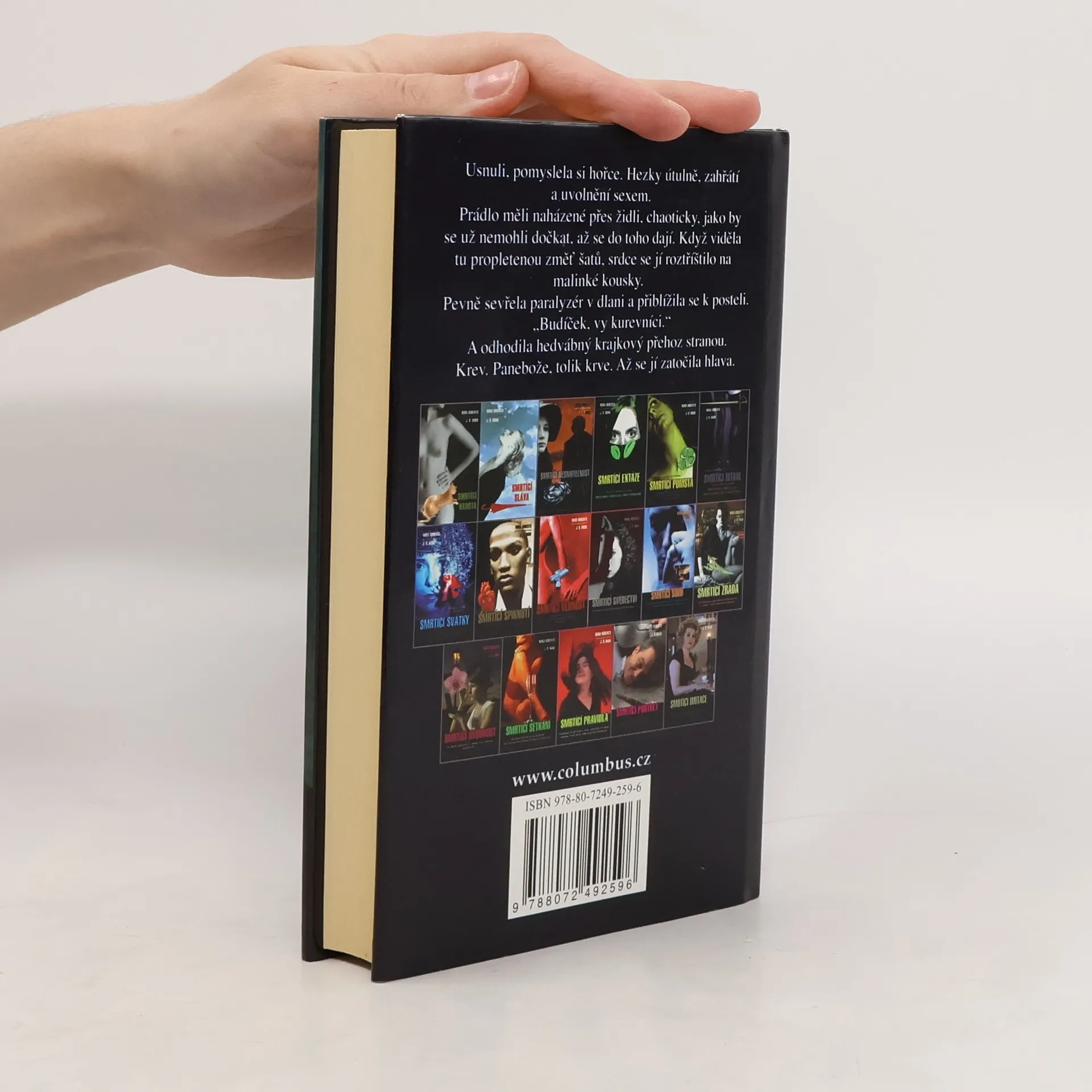 Nejnovější pokračování napínavé detektivní řady z budoucnosti…Poručík Eva Dallasová v nebezpečném boji proti tajným službám. Další pokračování veleúspěšné série Smrtící… známé americké spisovatelky Nory Roberts píšící pod pseudonymem J. D. Robb nás opět zavádí do New Yorku blízké budoucnosti a i tentokrát má pro nás zločin, nad nímž se tají dech. Svérázná policejní vyšetřovatelka Eva Dallasová stojí před zapeklitým případem čtyřnásobné vraždy. Nejde ovšem o nic jednoduchého. Jak se později ukáže, do všeho jsou zapletené tajné služby, technoteroristé, záhadný počítačový virus…a přes hlavní podezřelou, bezpečnostní expertku Revu Ewingovou dokonce i Evin vlastní manžel, miliardář Roarke, který dotyčnou odbornici zaměstnává. A aby toho nebylo málo, zdá se, že do dokonalého štěstí, které Eva s Roarkem prožívají, se vkrádá náhlý stín, který by je mohl rozdělit. Napínavý děj osciluje mezi detektivkou, špionážním thrillerem a milostnou romancí, takže si každý čtenář přijde na své. Navíc přidejte peprné dialogy a humor a dostanete knihu, která bude ozdobou vaší knihovny.