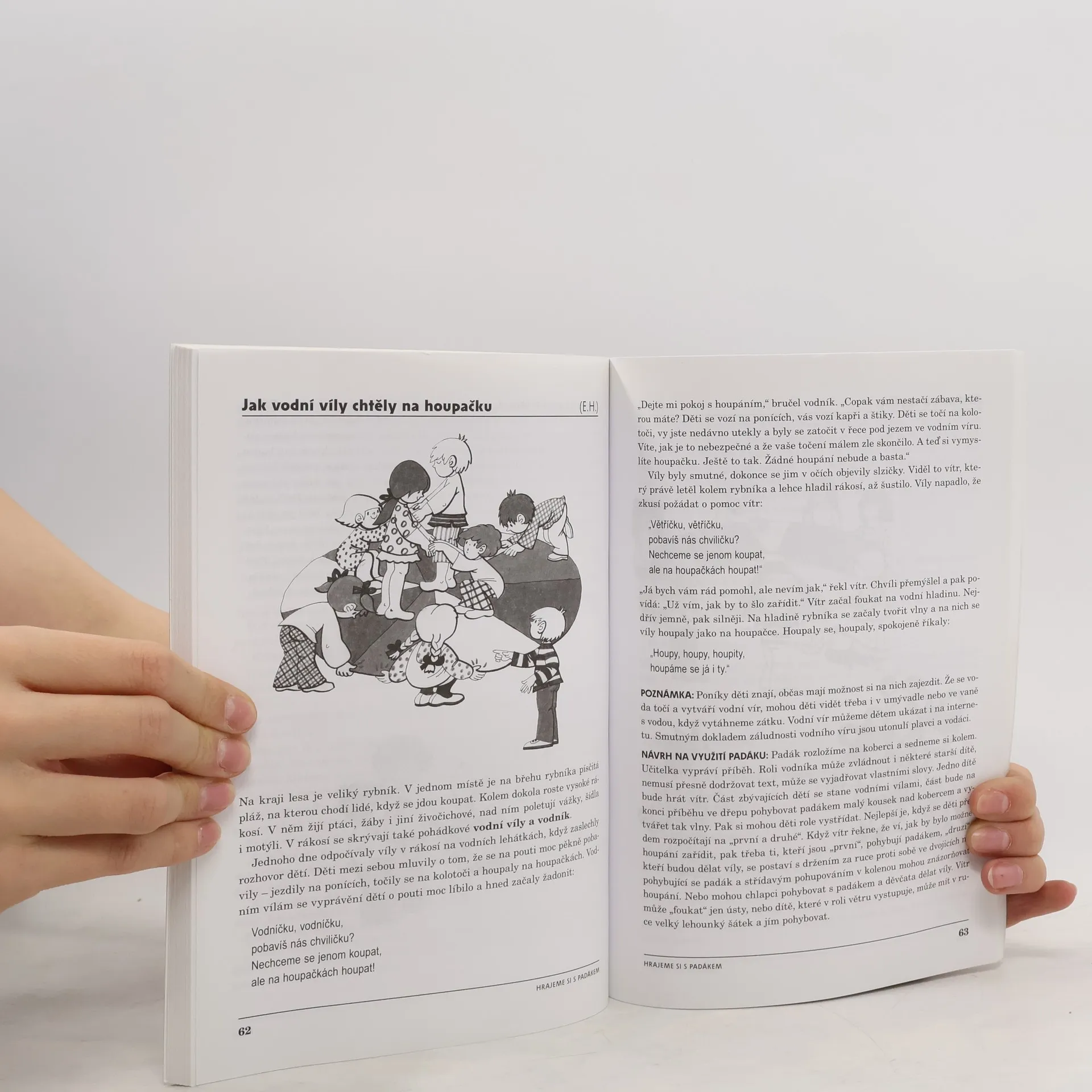 Kniha potěší učitele a vychovatele volající po širší nabídce kolektivních herních aktivit s netradiční, ale oblíbenou pomůckou padákem. Nabízí na padesát her s padákem a v poslední kapitole je doplněna hrami se stuhami a šátky. Hra s padákem poskytuje dětem radost z pohybu a slouží k zábavnému rozvíjení hrubé motoriky a spolupráce ve skupině. Výsledkem je lepší koordinace pohybů a ovládání vlastního těla i upevnění sociálních dovedností a vztahů. Hry s padákem nejsou určeny jednotlivcům, spolupráce ve skupině dětí je nutná a prospěšná. Texty jsou doplněny ilustracemi E. Plickové. Knihu ocení učitelé a vychovatelé v MŠ, v mateřských centrech, prvních ročnících ZŠ a ve školních družinách i rodiče. Eva Hurdová pracovala jako učitelka MŠ a metodička předškolní výchovy v Pedagogickém centru Praha. Vede hudebně pohybové semináře, je spoluautorkou několika knih pro učitelky MŠ.