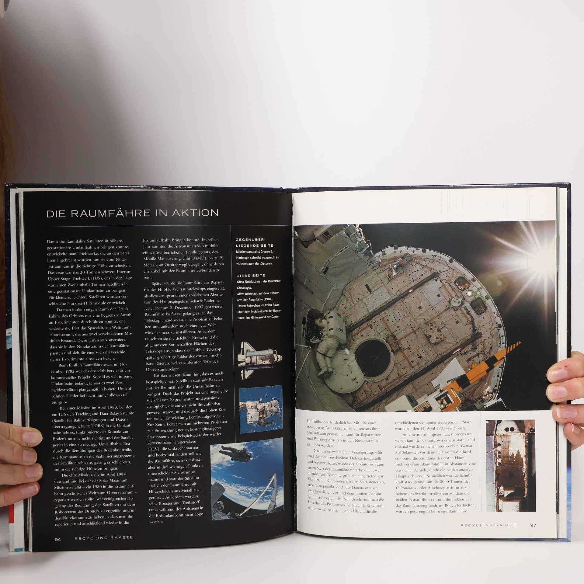 Reich illustrierte Darstellung des Aufbaus des Alls, der ersten Raketen und Weltraumsatelliten, bemannter Weltraumflüge, Raumstationen u.a.