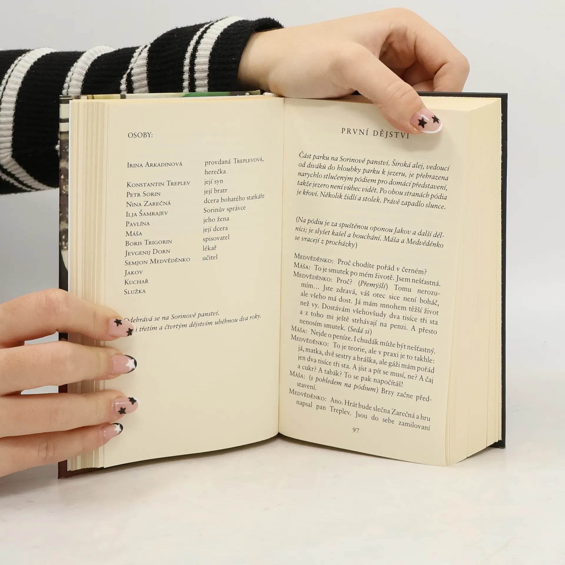 Sborník obsahuje 5 her: Ivanov : drama o čtyřech dějstvích -- Racek : komedie o čtyřech dějstvích -- Strýček Váňa : výjevy z vesnického života ve čtyřech dějstvích -- Tři sestry : drama o čtyřech dějstvích -- Višňový sad : komedie o čtyřech dějstvích