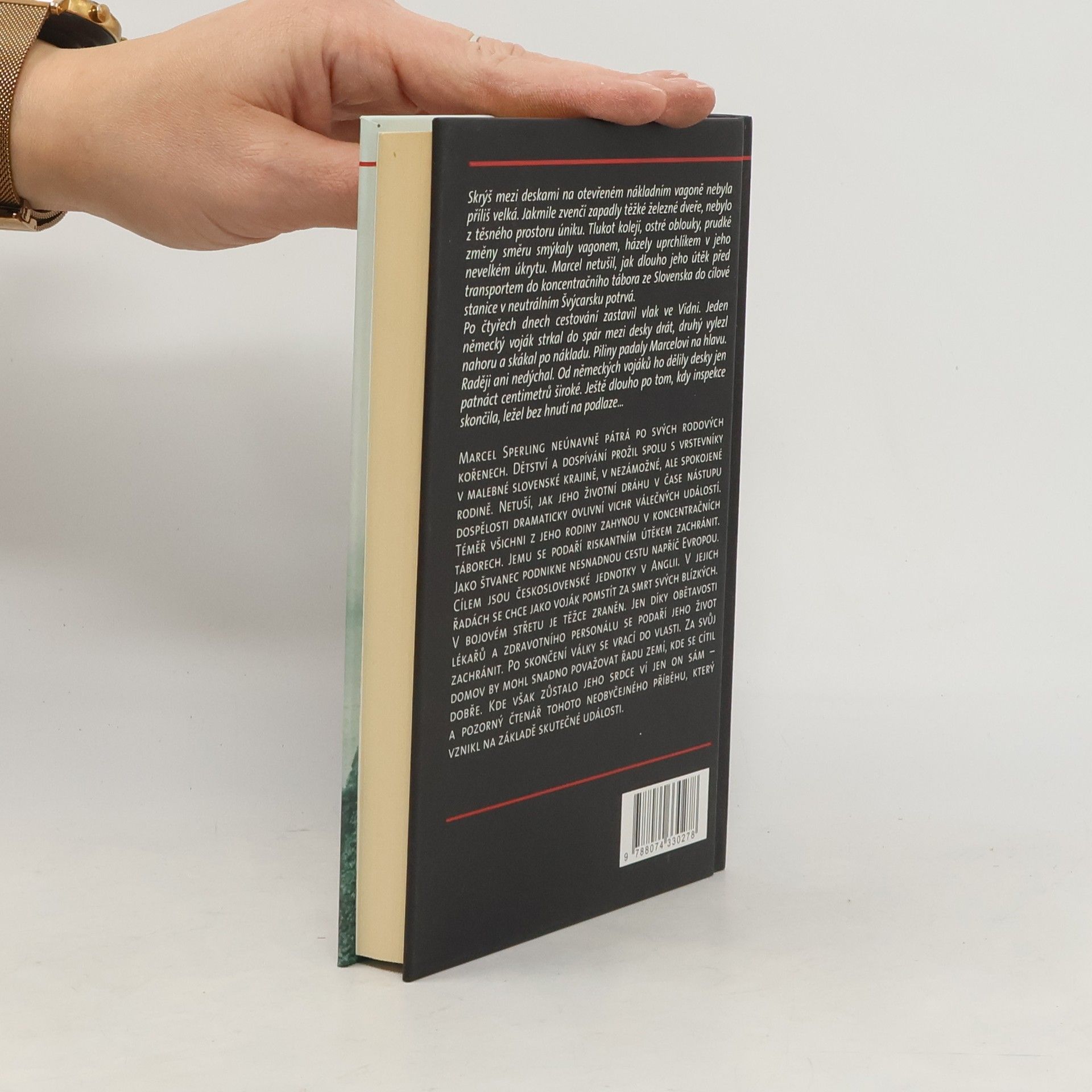 Skutečný příběh riskantního útěku před smrtí v koncentračním táboře vypráví o Marcelovi, který se skrývá mezi deskami v otevřeném nákladním vagonu. Jakmile se za ním zavřou těžké železné dveře, není úniku. Tlak kolejí a prudké zatáčky hází s ním v malém úkrytu. Marcel netuší, jak dlouho potrvá jeho útěk ze Slovenska do neutrálního Švýcarska. Po čtyřech dnech vlak zastaví ve Vídni, kde se blíží k jeho úkrytu dva němečtí vojáci. Strach z odhalení je ohromný, a tak leží bez hnutí na podlaze. Marcel Sperling, který neúnavně pátrá po svých rodových kořenech, prožil dětství v malebné slovenské krajině. Jeho život se dramaticky změní s nástupem války, kdy téměř celá jeho rodina zahyne v koncentračních táborech. On se však rozhodne riskovat a podniknout nebezpečnou cestu napříč Evropou, aby se připojil k československým jednotkám v Anglii a pomstil smrt svých blízkých. V bojovém střetu je těžce zraněn, ale díky lékařům přežije. Po válce se vrací domů, ale jeho srdce zůstává roztrženo mezi různými zeměmi, kde se cítil dobře. Tento neobyčejný příběh, založený na skutečných událostech, odhaluje hloubku lidské odolnosti a touhy po domově.