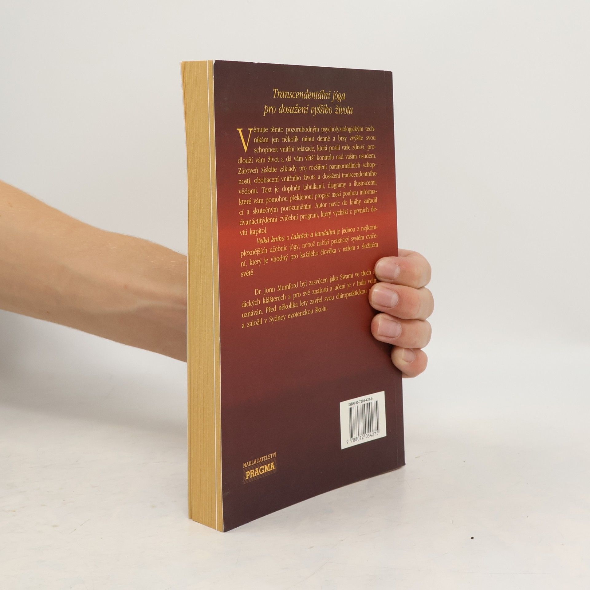 Psychospirituální techniky léčení, omlazování a duchovní seberealizace. Transcendentální jóga pro dosažení vyššího života. Věnujte těmto pozoruhodným psychofyziologickým technikám jen několik minut denně a brzy zvýšíte svou schopnost vnitřní relaxace, která posílí vaše zdraví, prodlouží vám život a dá vám větší kontrolu nad vaším osudem. Zároveň získáte základy pro rozšíření paranormálních schopností, obohacení vnitřního života a dosažení transcendentního vědomí. Text je doplněn tabulkami, diagramy a ilustracemi, které vám pomohou překlenout propast mezi pouhou informací a skutečným porozuměním. Autor navíc do knihy zařadil dvanáctitýdenní cvičební program, který vychází z prvních devíti kapitol. Velká kniha o čakrách a kundalini je jednou z nejkomplexnějších učebnic jógy, nebaž nabízí praktický systém cvičení, který je vhodný pro každého člověka v našem a složitém světě.