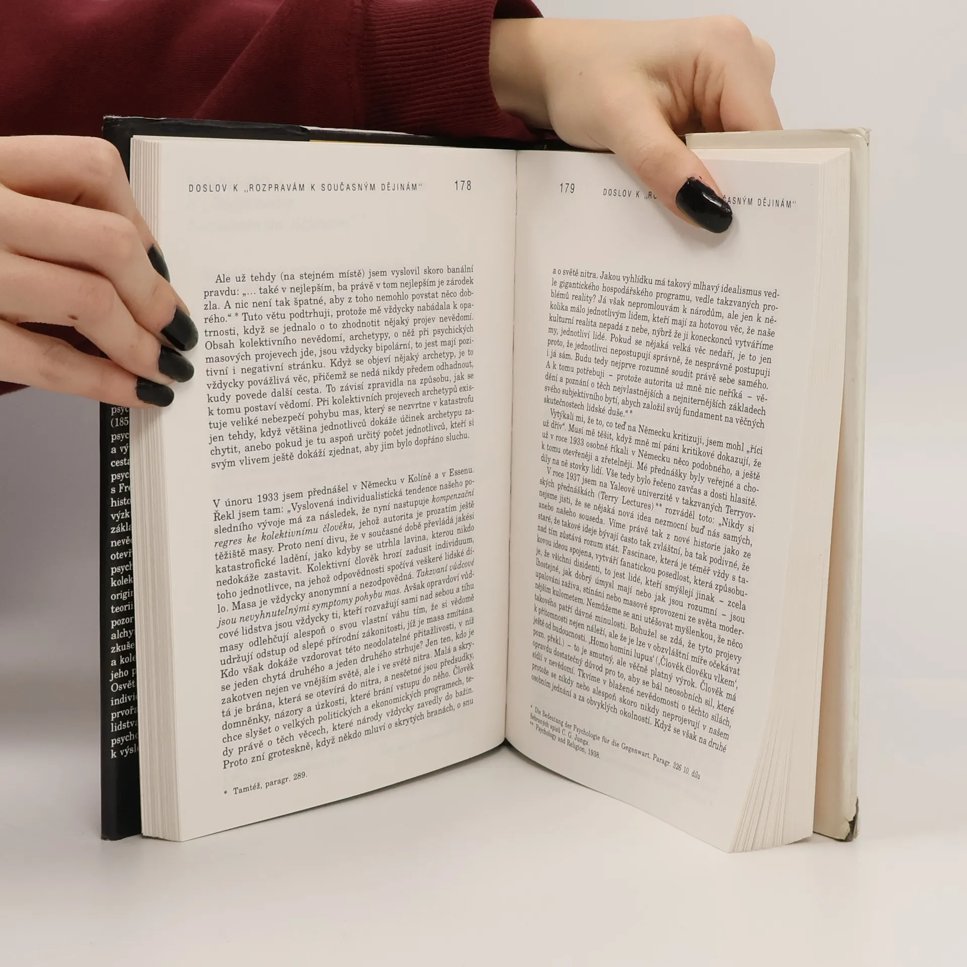 Výbor klade do rukou českého čtenáře reprezentativní texty jednoho z největších moderních znalců lidské duše. Z obsahu: I/ Problémy duše moderního člověka Základní problém současné psychologie Protiklad Freud a Jung Problém duše moderního člověka O vzniku osobnosti Nadaný Manželství jako psychologický vztah Životní obrat Duše a smrt Psychoterapie a světový názor Ulysses — Monolog Picasso Po katastrofě Doslov k „Rozpravám k současným dějinám“ Boj se stínem II/ Ze vzpomínek — snů — myšlenek C. G. Junga Svazek uzavírá Ediční poznámka překladatele, Bibliografie a text O autorovi a jeho díle. Stati vybral a z německých originálů přeložil Karel Plocek Předmluvu napsal Ludvík Běťák Vydání první