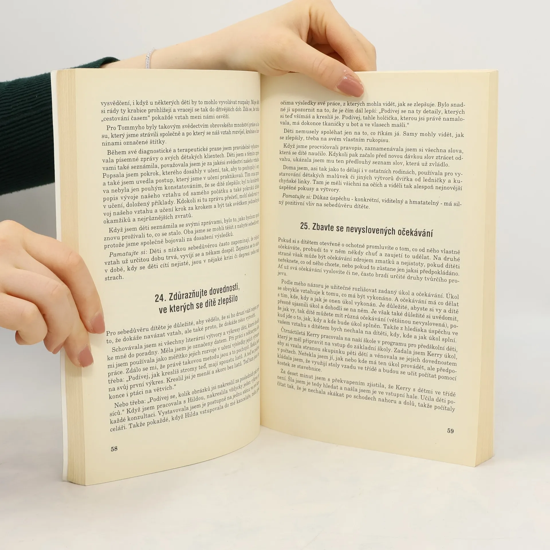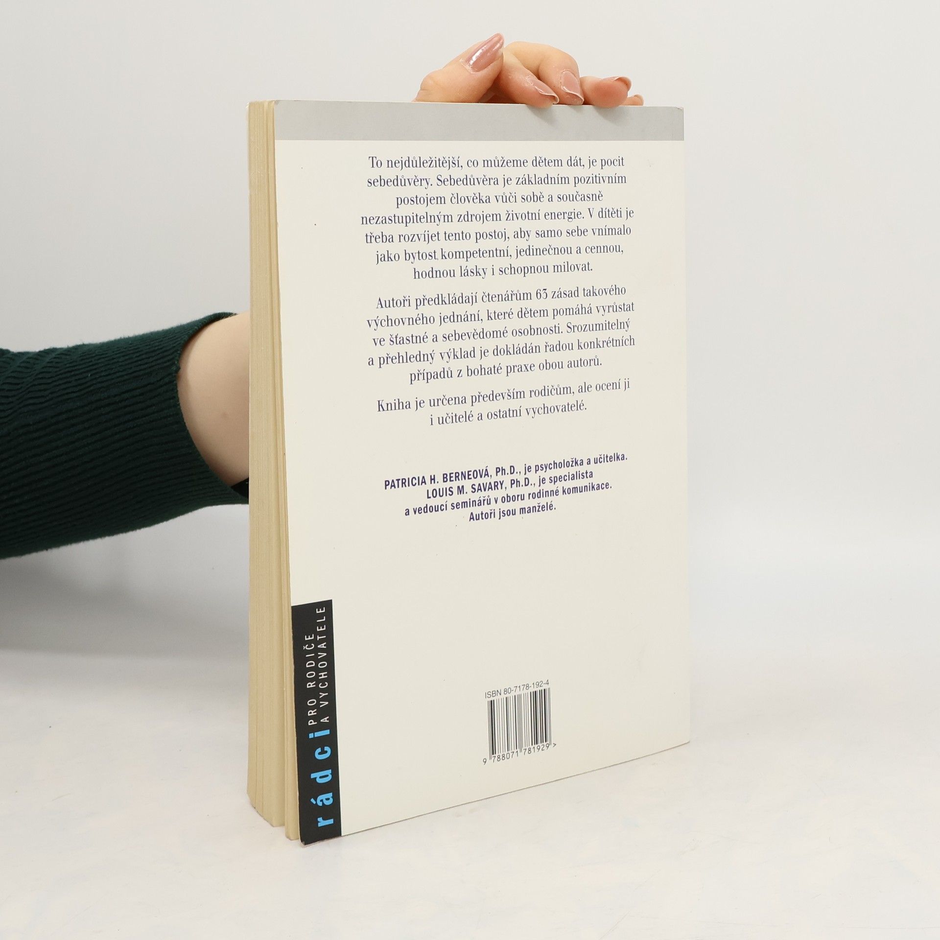 63 principů dokládaných řadou příkladů pomůže vychovat dítě k pocitu sebedůvěry. Sebeúcta a sebedůvěra jsou základním pozitivním lidským postojem vůči sobě samému a zároveň i nezastupitelným zdrojem životní energie. Rozvine-li člověk tento postoj, vnímá sebe sama jako někoho, kdo je schopný a kompetentní, jedinečný, hodný lásky i schopný milovat. Přehled principů, čtivých a dokládaných řadou příkladů, pomůže dospělým jednat tak, aby jejich děti vyrůstaly k pocitu sebeúcty a sebedůvěry.
