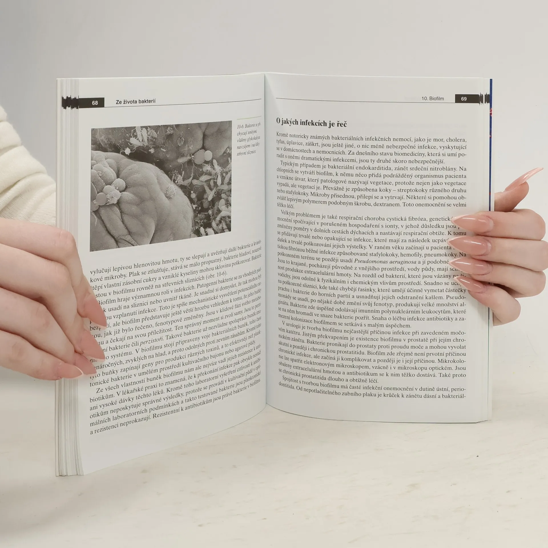 Bakterie, s nimiž člověk přichází do styku, tvoří mikrosvět, do něhož lze nahlédnout mikroskopem. Ačkoliv je takový pohled fascinující, odhaluje jen část skutečnosti. Bakterie, které nás obklopují, mají překvapivé životní projevy a koordinovaně je řídí, pracují pomocí trpasličích mechanických strojů poháněných chemickou energií, pohybují se za potravou a prchají od jedovatých látek, komunikují s ostatními, kooperují, pokud to potřebují, a jsou si antagonisty, pokud by jejich pozice byla ohrožena. Chovají se jinak, když jich je málo, a jinak, když jejich populace roste. Mají své loupeživé nepřátele z řad bakterií a škodí jim jejich vlastní viry. Umí vytvářet společenství se složitou strukturou a změněnými vlastnostmi. Lidskému tělu škodí, což je všeobecně známo, ale i prospívají – o tom se ví již méně. Antibiotikům se umějí bránit jako jednotlivci, ale i v populaci. Takový pohled na bakterie poskytuje připravovaná kniha, snažící se přístupnou formou oslovit vzdělané čtenáře se zájmem o biologii a infekční nemoci. Text je doplněn četnými obrázky, fotografiemi, schématy a nákresy.