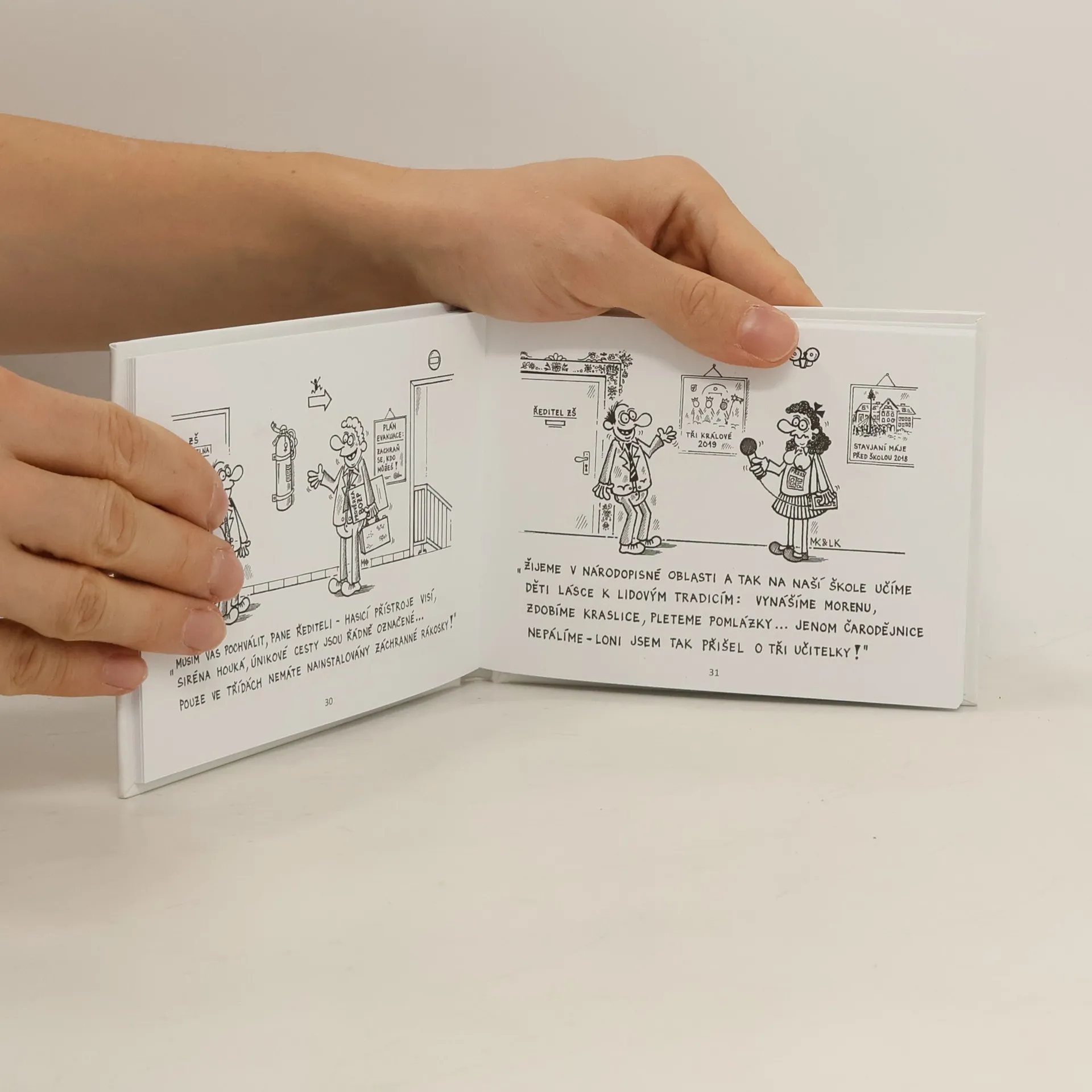 Bez humoru učit opravdu nejde! Už před lety říkal praotec všech učitelů Jan Ámos Komenský: „Škola bez humoru je jako mlýn bez vody.“ Nebo tak nějak. A kdo jiný by se měl věnovat školskému humoru, než ti nejpovolanější - tj. učitelé, u kterých by měl být smysl pro humor víceméně povinnou součástí jejich pedagogické osobnosti. Typickým příkladem je můj dlouholetý kolega Milan Kocmánek. Kdyby bral školství smrtelně vážně, dělal by dnes ředitele školy nebo školního inspektora, prudil děti i své podřízené a tak jako mnozí jiní škodil českému školství. Jenomže Milan, když vezme do ruky tužku nebo jinou psací potřebu, není to proto, aby zapsal pětku do žákovské knížky nebo poznámku do třídní knihy. On s ní vykouzlí půvabné postavičky žáků i učitelů v nejrůznějších humorných situacích a rozdává tak všem dobrou náladu. A té je nejen v českém školství obzvlášť zapotřebí!