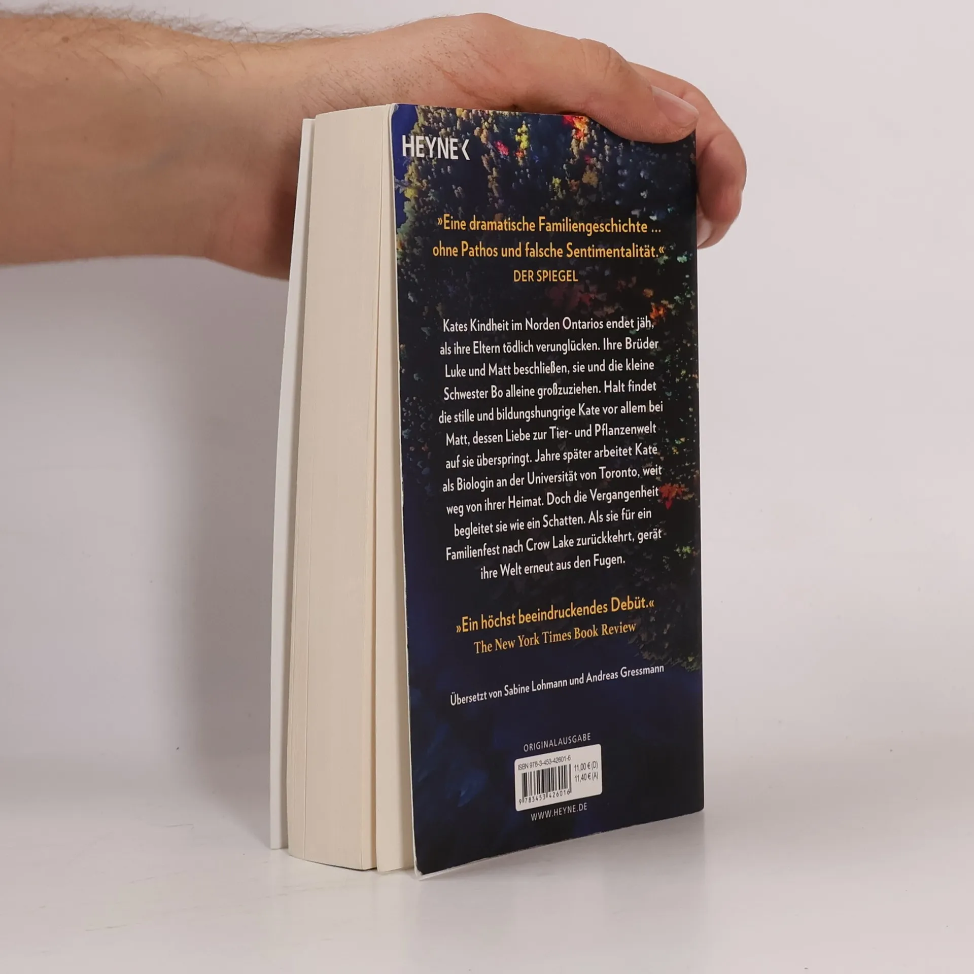 Kates Kindheit im Norden Ontarios endet jäh, als ihre Eltern tödlich verunglücken. Ihre beiden Brüder Luke und Matt beschließen, sie und die kleine Schwester Bo alleine großzuziehen. Halt findet die verschlossene und bildungshungrige Kate vor allem bei Matt, dessen Liebe zur Tier- und Pflanzenwelt auf sie überspringt. Jahre später arbeitet Kate erfolgreich als Biologin an der Universität von Toronto, weit weg von ihrer Heimat. Doch die Geschehnisse von damals schweben immer noch wie ein Schatten über ihr. Als sie für ein Familienfest nach Crow Lake zurückkehrt, gerät ihre Welt erneut aus den Fugen. »Ein höchst beeindruckendes Debüt. Lassen Sie es sich nicht entgehen.« The New York Times Book Review