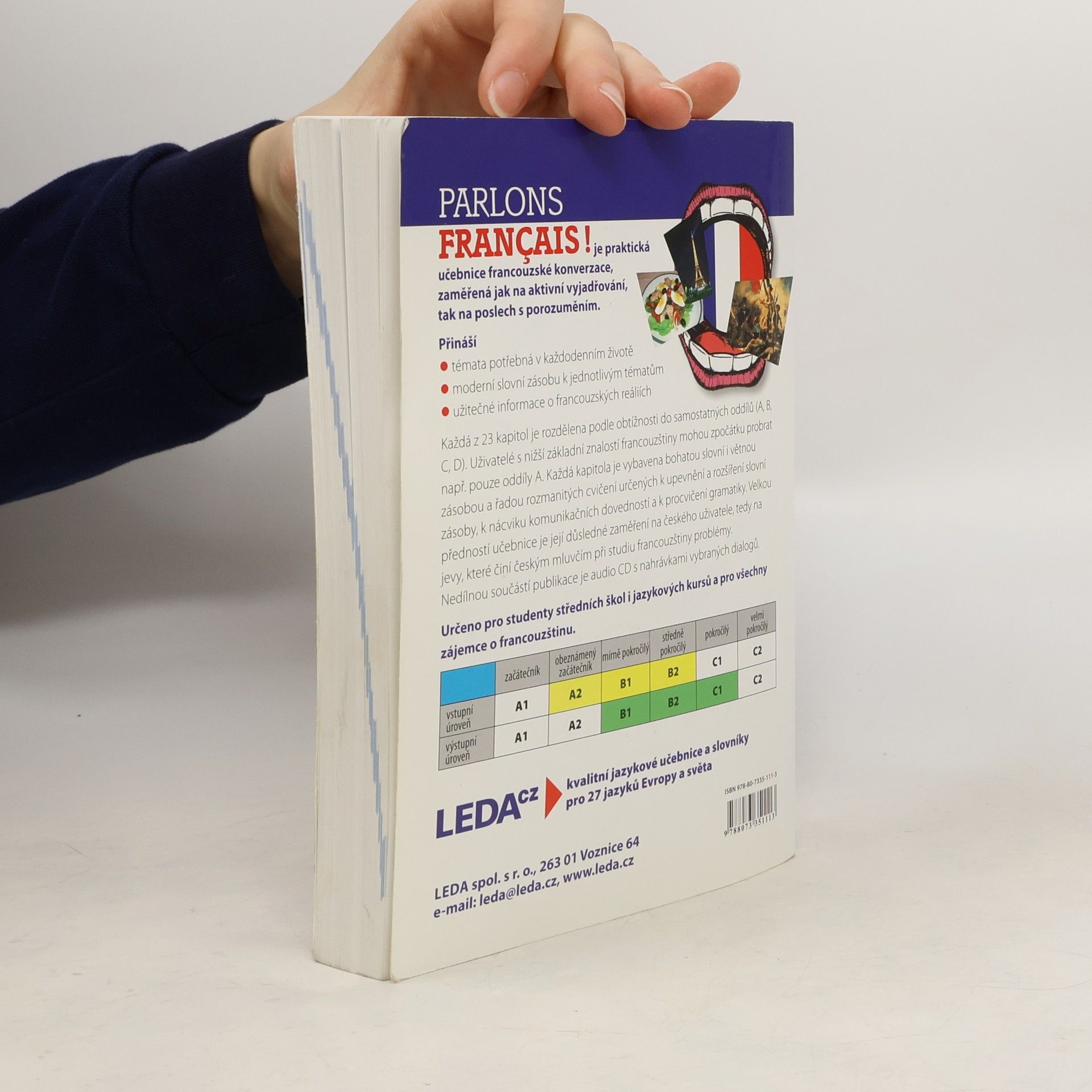 Učebnice francouzské konverzace vhodná pro studenty středních škol, jazykových kursů a všechny zájemce o francouzštinu. Obsahuje - aktuální slovní zásobu - témata potřebná v každodenním styku - informace o francouzských reáliích Učebnice má 23 kapitol, které jsou rozděleny podle obtížnosti, a uvádí různorodá cvičení určená k upevnění a rozšíření slovní zásoby, k nácviku komunikativních dovedností a procvičení gramatiky. K učebnici je vydána audiokazeta s nahrávkami vybraných textů.
