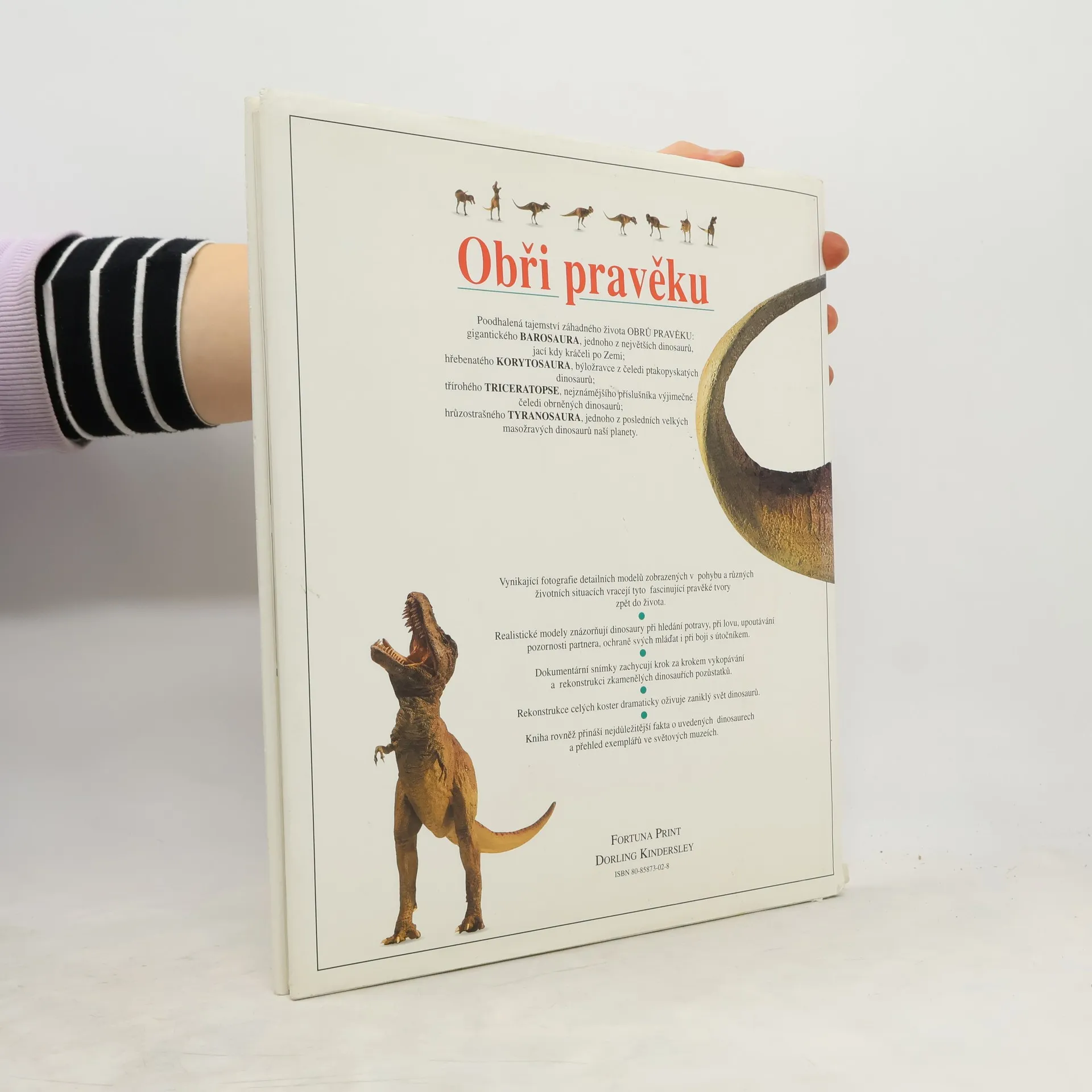 Barosaurus, Corythosaurus, Triceratops, Tyrannosaurus - jsou zde obsáhle představeni, nechybějí celé série fotografií z prací při rekonstrukcích jejich těl, historie jejich objevů a obrázky z jejich života.