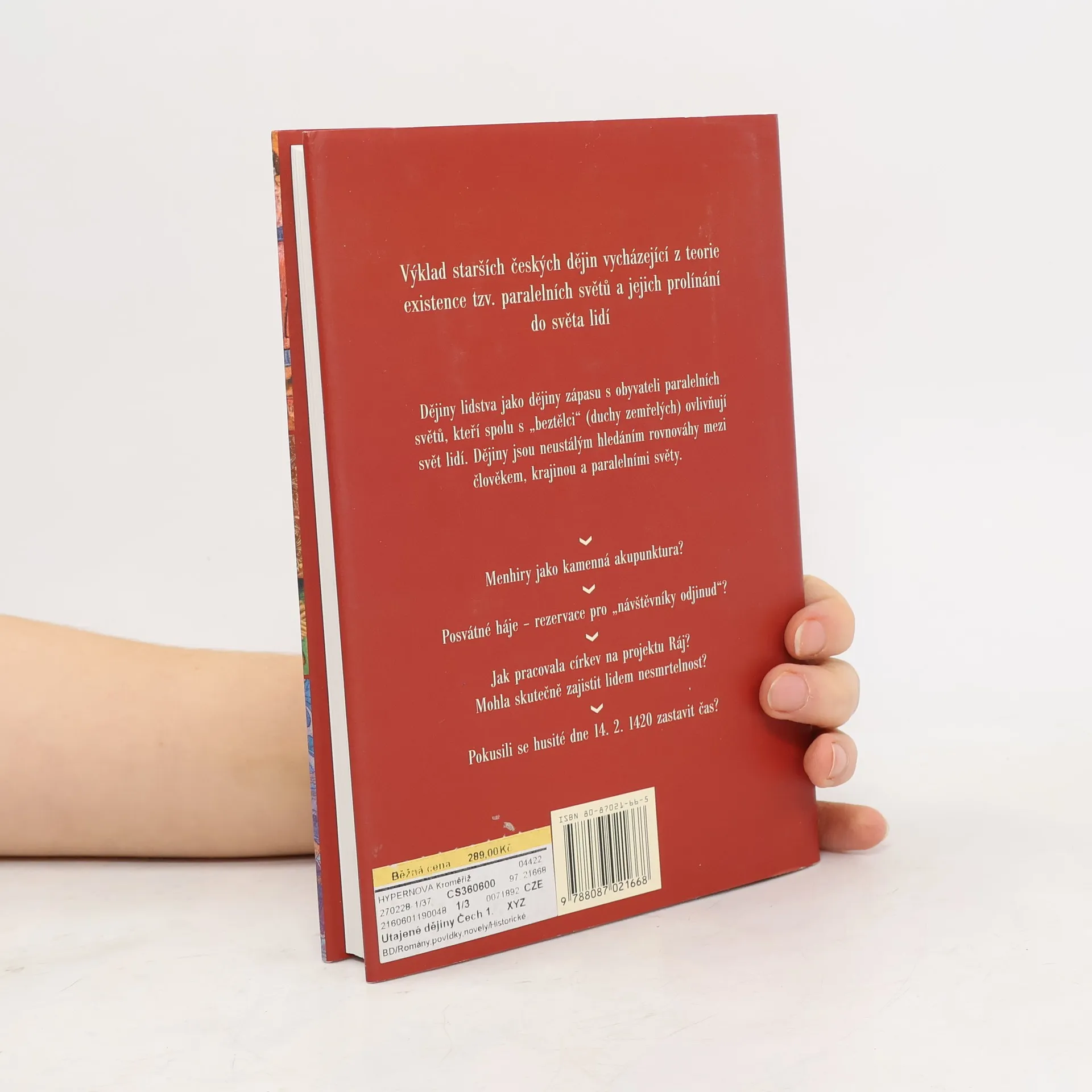 Od pravěku po husitské války (do roku 1435) Výklad starších českých dějin vycházející z teorie existence tzv. paralelních světů a jejich prolínání do světa lidí. Dějiny lidstva jako dějiny zápasu s obyvateli paralelních světů, kteří spolu s "beztělci" (duchy zemřelých) ovlivňují svět lidí. Dějiny jsou neustálým hledáním rovnováhy mezi člověkem, krajinou a paralelními světy. • Menhiry jako kamenná akupunktura? • Posvátné háje – rezervace pro „návštěvníky odjinud“? • Jak pracovala církev na projektu Ráj? Mohla skutečně zajistit lidem nesmrtelnost? • Pokusili se husité dne 14. 2. 1420 zastavit čas