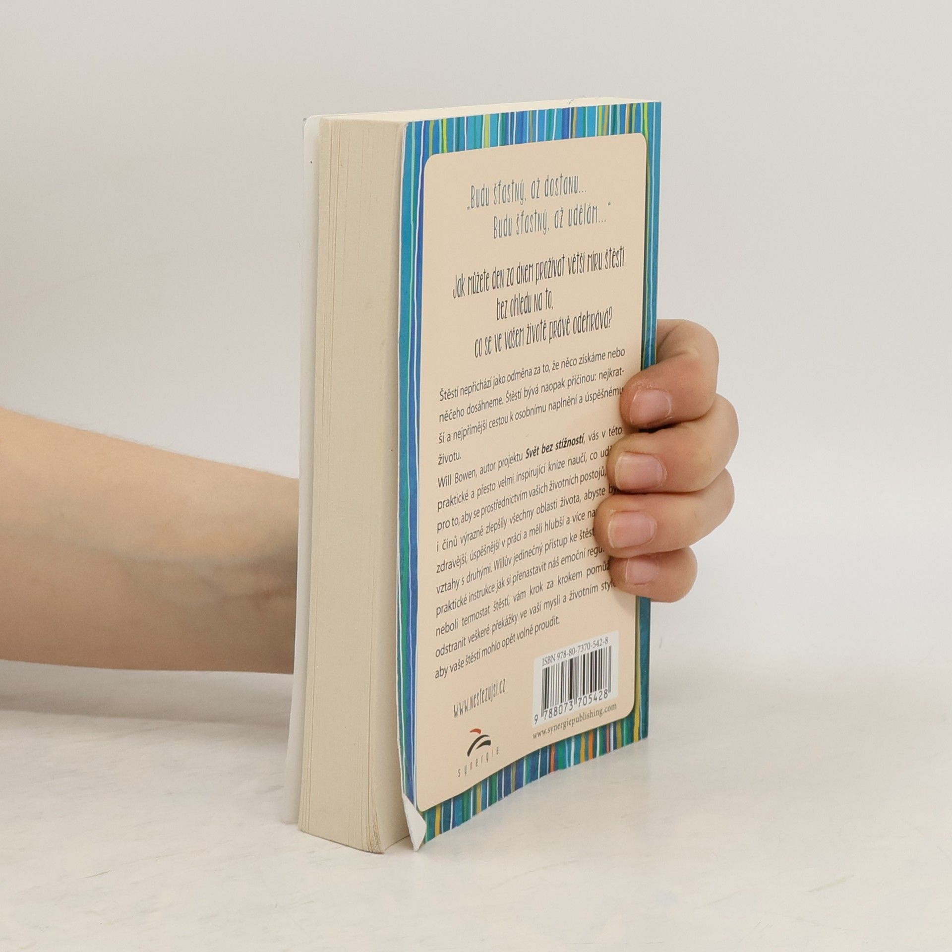 Jak můžete den za dnem prožívat větší míru štěstí bez ohledu na to, co se ve vašem životě právě odehrává? Štěstí nepřichází jako odměna za to, že něco získáme nebo něčeho dosáhneme. Štěstí bývá naopak příčinou: nejkratší a nejpřímější cestou k osobnímu naplnění a úspěšnému životu. Will Bowen, autor projektu Svět bez stížností, vás v této praktické a přesto velmi inspirující knize naučí, co udělat pro to, aby se prostřednictvím vašich životních postojů, slov i činů výrazně zlepšily všechny oblasti života, abyste byli zdravější, úspěšnější v práci a měli hlubší a více naplňující vztahy s druhými. Willův jedinečný přístup ke štěstí a jeho praktické instrukce jak si přenastavit náš emoční regulátor, neboli termostat štěstí, vám krok za krokem pomůžou odstranit veškeré překážky ve vaší mysli a životním stylu, aby vaše štěstí mohlo opět volně proudit.
