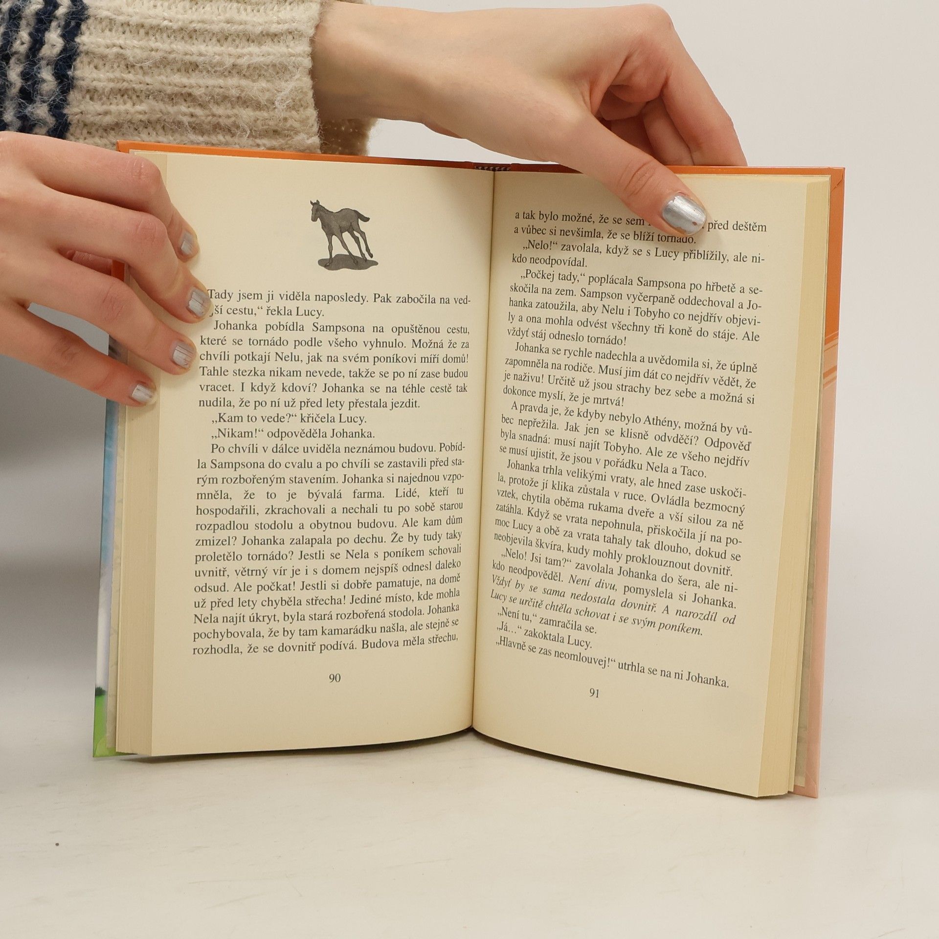 Johanka se svou nejlepší kamarádkou Nelou, si naplánovaly příjemné odpoledne s výletem na koních. Poklidná projížďka se ale změní v hotové peklo. Pár kilometrů od nich se náhle objeví obrovský temný mrak, zlehka se dotkne země a pak se zformuje do obrovského trychtýře. Tornádo! Když větrný vír dívky rozdělí a smete jedno z hříbat, zdá se, že nikdo nemůže vyváznout živý. Najednou se však objeví tajemná dívka se zlatými vlasy a jantarovýma očima, stvoření jak z jiného světa. Podaří se jí pomoci Johance a zachránit ostatní?