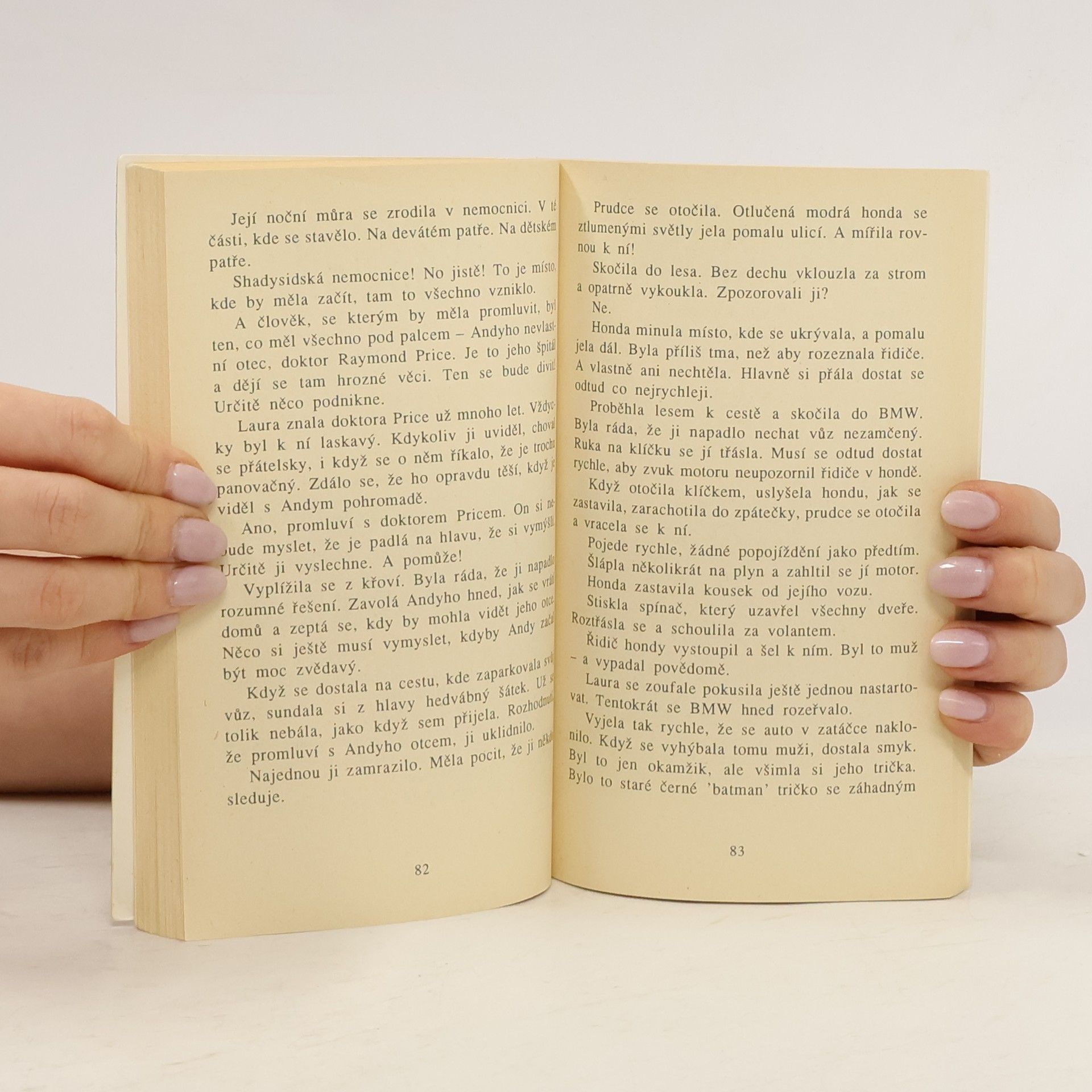 Je jedno malé město a v něm Ulice Hrůzy (i tak by se dal přeložit anglický název Fear Street). V nemocnici na téhle ulici se začíná odvíjet záhadný příběh, u jehož zrodu je naříkavý pláč nemocného chlapce. Studentka Laura, která je v nemocnici na praxi, se o malého Tobyho zajímá a je znepokojena, když náhle z nemocnice zmizí. Při pátrání po něm najde jednu z ošetřovatelek zavražděnou… Laura se však nevzdává, i když i její život se ocitá v nebezpečí. Modrá honda s neznámým řidičem ji sleduje na každém kroku… Podaří se Lauře a její přítelkyni rozplést síť záhad kolem nemocnice v Ulici Hrůzy a zjistit, jaký zločin se skrývá po bílým pláštěm…?... celý text