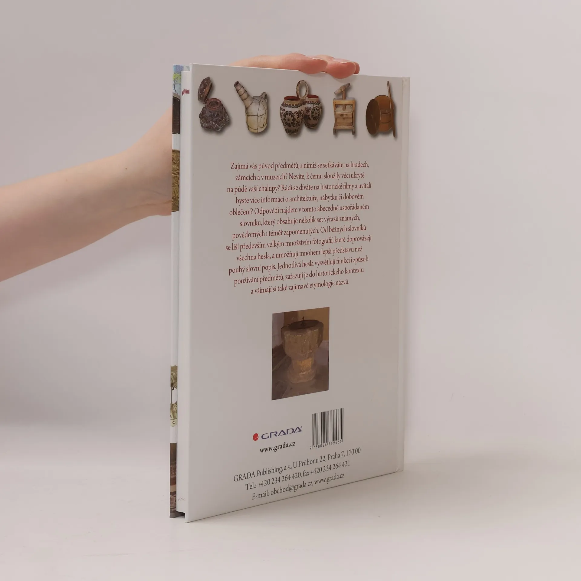 Jedinečnost celkového zpracování, několik set hesel nabitých zajímavými informacemi o životě v minulosti, zábavnou formou podané historické souvislosti, bezmála tisícovka fotografií, to jsou hlavní přednosti této krásné publikace, která je určena všem návštěvníkům hradů, zámků, muzeí a skanzenů, milovníkům historických filmů a zájemcům o historii vůbec. Jistě se i vám stává, že vaši pozornost při prohlídce historické památky upoutá nějaký předmět, a vy netušíte, k čemu se dřív používal. Anebo nevíte, k čemu sloužily nástroje vašich babiček a dědů, které máte na chalupě. Sledujete děj filmu a divíte se, jak jsou jeho představitelé oblečeni a jakými předměty obklopeni. V abecedně uspořádaných heslech z nejrůznějších oblastí lidské činnosti se dozvíte vše potřebné, a nejenže se poučíte, ale skvěle pobavíte.
