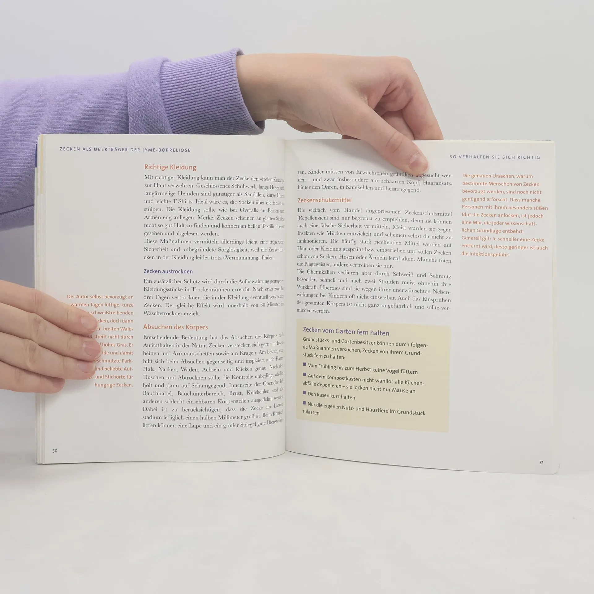 Mit neuen Forschungsergebnissen Ein Zeckenbiss kann schlimme Folgen haben. Die Angst vor der Borreliose, die von Zecken übertragen werden kann, beunruhigt immer mehr Menschen. Besonders wer sich viel in der Natur aufhält, fürchtet diese Krankheit. Die auch Lymeborreliose genannte Erkrankung beginnt mit einer leichten, ringförmigen Hautrötung um den Biss herum, und neben grippeähnlichen Symptomen, Kopfschmerzen, geschwollenen Gelenken, Entzündungen innerer Organe kann es sogar zu Nervenlähmungen kommen. Wird die Borreliose rechtzeitig erkannt, bieten Schul- und Alternativmedizin wirksame Behandlungsstrategien, um sie erfolgreich zu bekämpfen. Damit es soweit aber gar nicht erst kommt, wird genau beschrieben, wie man sich vor Zeckenbissen erfolgreich schützen kann. - Borreliose - eine der häufigsten Infektionskrankheiten. Die Zahl der Betroffenen steigt rapide an - bis zu 10 000 Fälle pro Jahr und Bundesland - Kompetenter Rat aus der täglichen Praxis: Rechtzeitig erkannt, kann die rätselhafte Krankheit mit Hilfe von Schul- und Alternativmedizin besiegt werden - Überblick über Symptome, Beschwerdebilder und Diagnosemöglichkeiten - Extra: Erfolgreicher Schutz vor Zeckenbissen