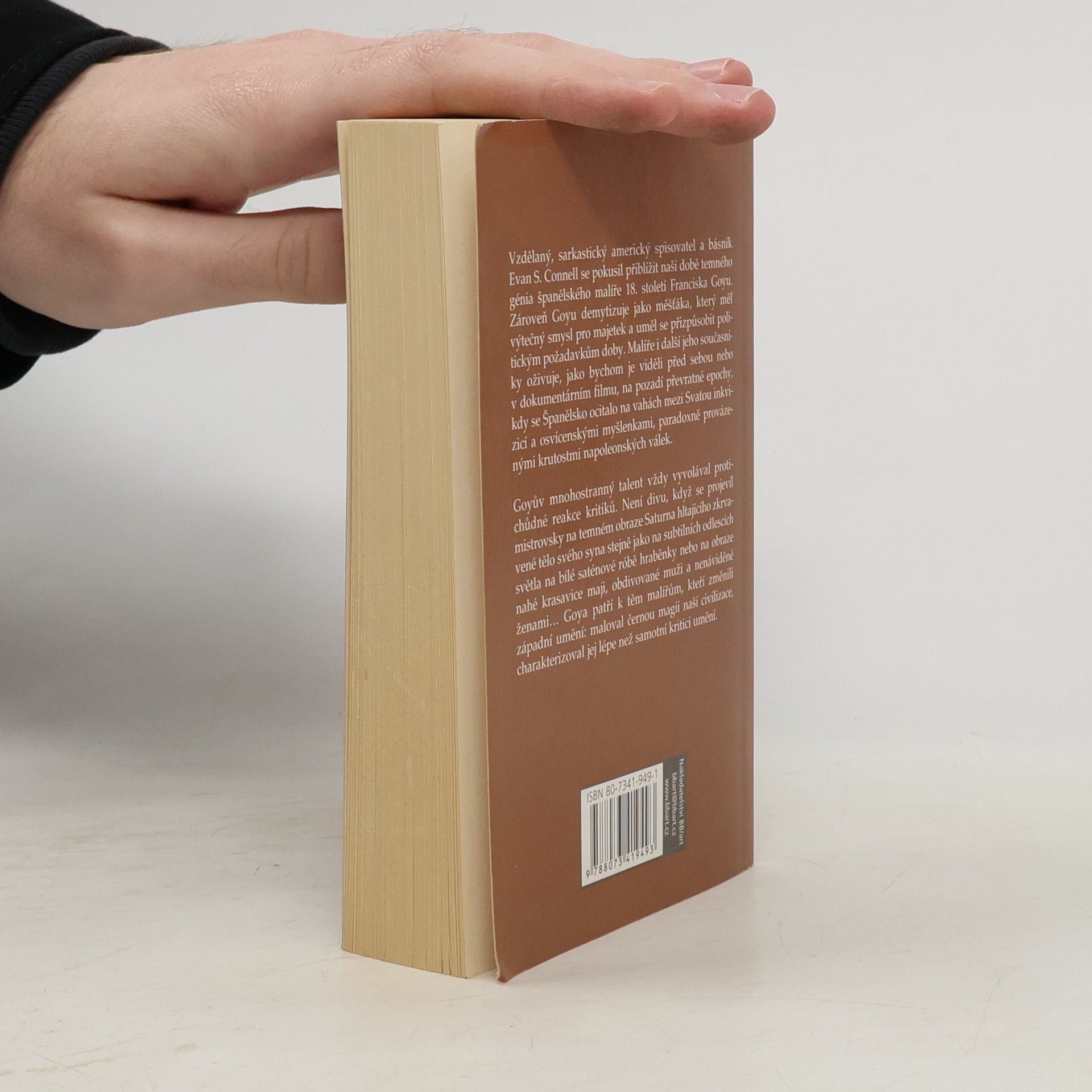 Goyův mnohostranný talent vyvolává u kritiků protichůdné reakce. Byl mistrem, jehož obraz Saturna, hltajícího zkrvavené tělo svého syna, je stejně nezapomenutelný jako jedinečné ztvárnění jemného světla v bílé saténové róbě hraběnky. Většina kritiků se shoduje, že Goya jednou provždy změnil západní umění, přičemž jeho vliv je různě interpretován. Degas si například posteskl, že Goyovou vinou je odsouzen k malování hospodyně ve vaně. Tento nevyzpytatelný umělec je pro autora skvěle zvoleným námětem. S proslulým vtipem, sarkastickou erudicí a podnětným bádáním oživuje dvorního malíře a jeho krutou dobu: Španělsko ve spárech inkvizice. Connell uvádí spoustu podrobností a komických rysů silně výstředních postav – vévodů, vévodkyň, královské rodiny, politiků a umělců – tvořících necudnou a nenapravitelnou sebranku hříšníků. Při mapování Goyovy kariéry zkoumá názory ostatních v průběhu dvou století – od šoku Paula Claudela po Baudelairův postřeh, že maloval černou magii naší civilizace. Connell vyčaroval Goyu, jeho umění a jeho dobu s krajní originalitou a bohatou obrazotvorností. Tato kniha je nezapomenutelným dílem mistrného vypravěče.