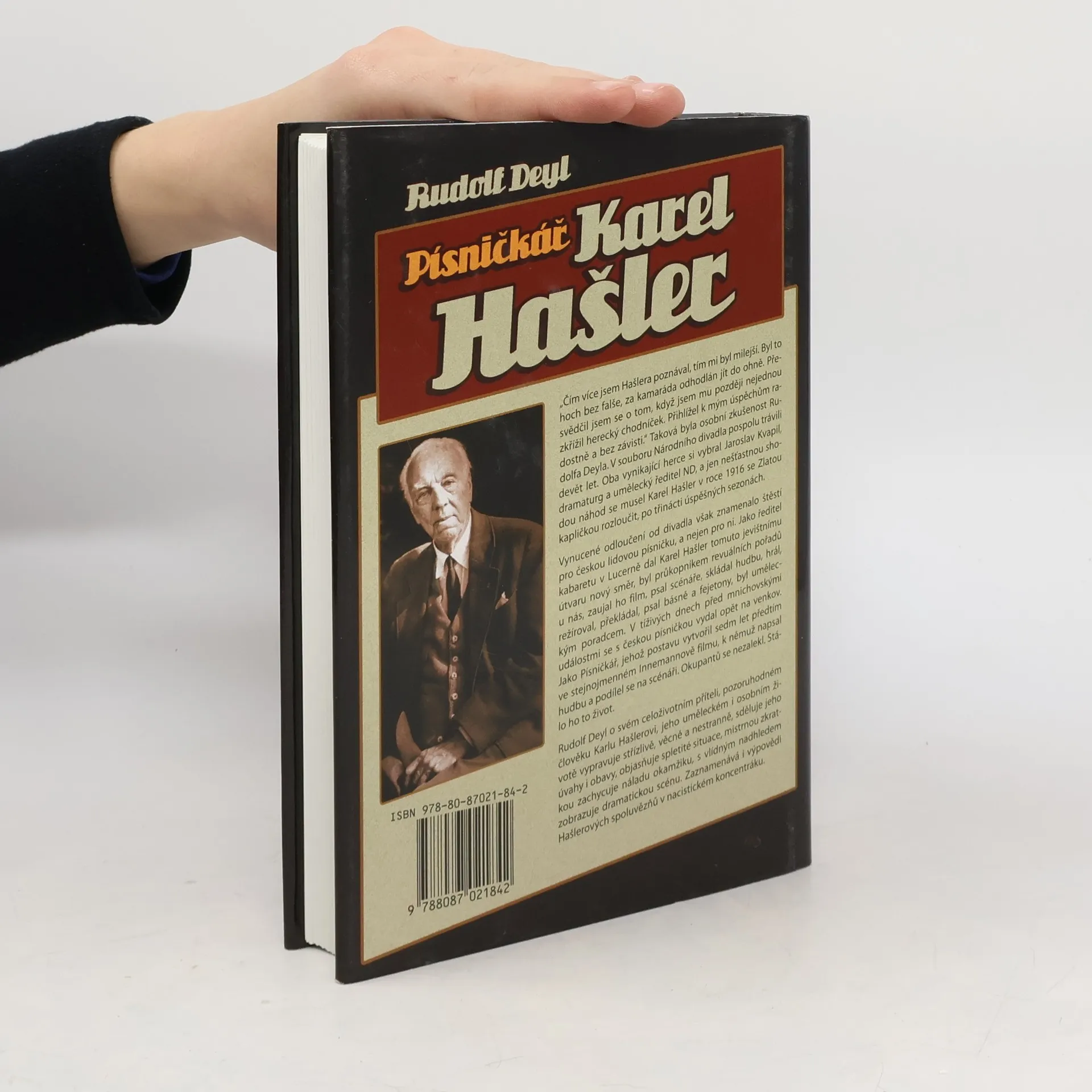 Vzpomínková kniha herce Rudolfa Deyla st. přibližuje pestrý profesní a spíše složitý rodinný život dlouholetého přítele a kolegy, herce a písničkáře Karla Hašlera. Vychází nejen z jeho vyprávění a poznámek, ale i z vlastních vzpomínek. Monografie přibližuje nejprve Hašlerovo dětství, pak učňovská léta řemesla rukavičkářského, ve kterém rozhodně svou budoucnost neviděl. Proto zběhl k divadlu a jako divadelní herec vystupoval nejdříve v kočovných divadelních společnostech, poté v kamenných divadlech v Brně, Lublani a od roku 1903 až 1915 byl členem Národního divadla. Jako filmový herec účinkoval v několika předválečných filmech a nejznámějším a nejpopulárnějším se stal jako písničkář a kabaretiér. Kniha má dvě části. V první využívá autor plně údaje, vyprávění a poznámky Karla Hašlera, v druhé části vychází ze svých osobních vzpomínek. Poslední stránky druhé části knihy zachycují poslední dny Hašlerova života - jeho zatčení, internace v koncentračním táboře v Mauthausenu a okolnosti tragického konce. Monografie je opatřena předmluvou k druhému vydání, soupisem tvůrčího díla Karla Hašlera, doslovem a bohatou fotodokumentací ze soukromých archivů i archivu nakladatelství.