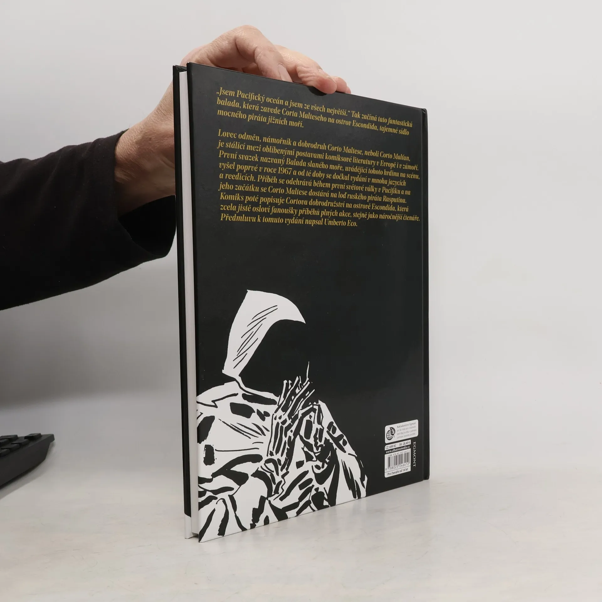 „Jsem Pacifický oceán a jsem ze všech největší.“ Tak začíná tato fantastická balada, která zavede Corta Malteseho na ostrov Escondida, tajemné sídlo mocného piráta jižních moří. Lovec odměn, námořník a dobrodruh Corto Maltese, neboli Corto Malťan, je stálicí mezi oblíbenými postavami komiksové literatury v Evropě i v zámoří. První svazek nazvaný Balada slaného moře, uvádějící tohoto hrdinu na scénu, vyšel poprvé v roce 1967 a od té doby se dočkal vydání v mnoha jazycích a reedicích. Příběh se odehrává během první světové války v Pacifiku a na jeho začátku se Corto Maltese dostává na loď ruského piráta Rasputina. Komiks poté popisuje Cortova dobrodružství na ostrově Escondida, která zcela jistě osloví fanoušky příběhů plných akce, stejně jako náročnější čtenáře. Předmluvu k tomuto vydání napsal Umberto Eco.