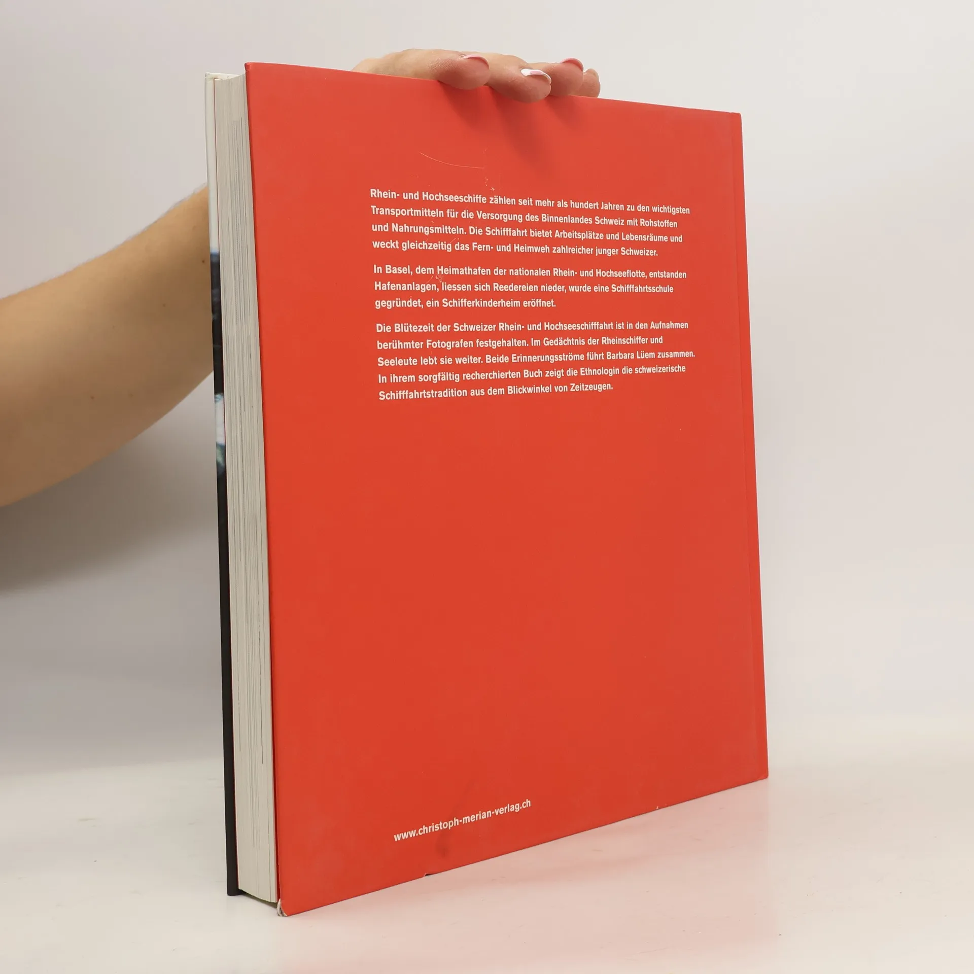 Die Schweizer Rhein- und Hochseeschifffahrt sorgte nicht nur für die Landesversorgung der Schweiz, sondern auch für Fern- und Heimweh vieler junger Schweizer. Am 2. Juni 1904 hatte der erste Dampfschlepper mit einer Ladung Kohle die Stadt Basel erreicht. In der Folge wurde der Rhein zum direkten Transportweg zwischen der Schweiz und Übersee. In Basel entstanden Hafenanlagen, Reedereien liessen sich nieder, eine Schifferschule wurde gegründet, und Basel wurde zum Heimathafen der Schweizer Hochseeflotte. Die Blütezeit der Schweizer Schifffahrt lebt in einem Schatz von bisher weitgehend unpublizierten Aufnahmen namhafter Fotografen weiter, aber auch in den Erinnerungen der Schiffer und Seeleute weiter. Beides bringt die Ethnologin Barbara Lüem in ihrem Buch zusammen. Eindrücklich dokumentiert sie die Schweizer Schifffahrtstradition aus der Sicht der beteiligten Zeitzeugen.