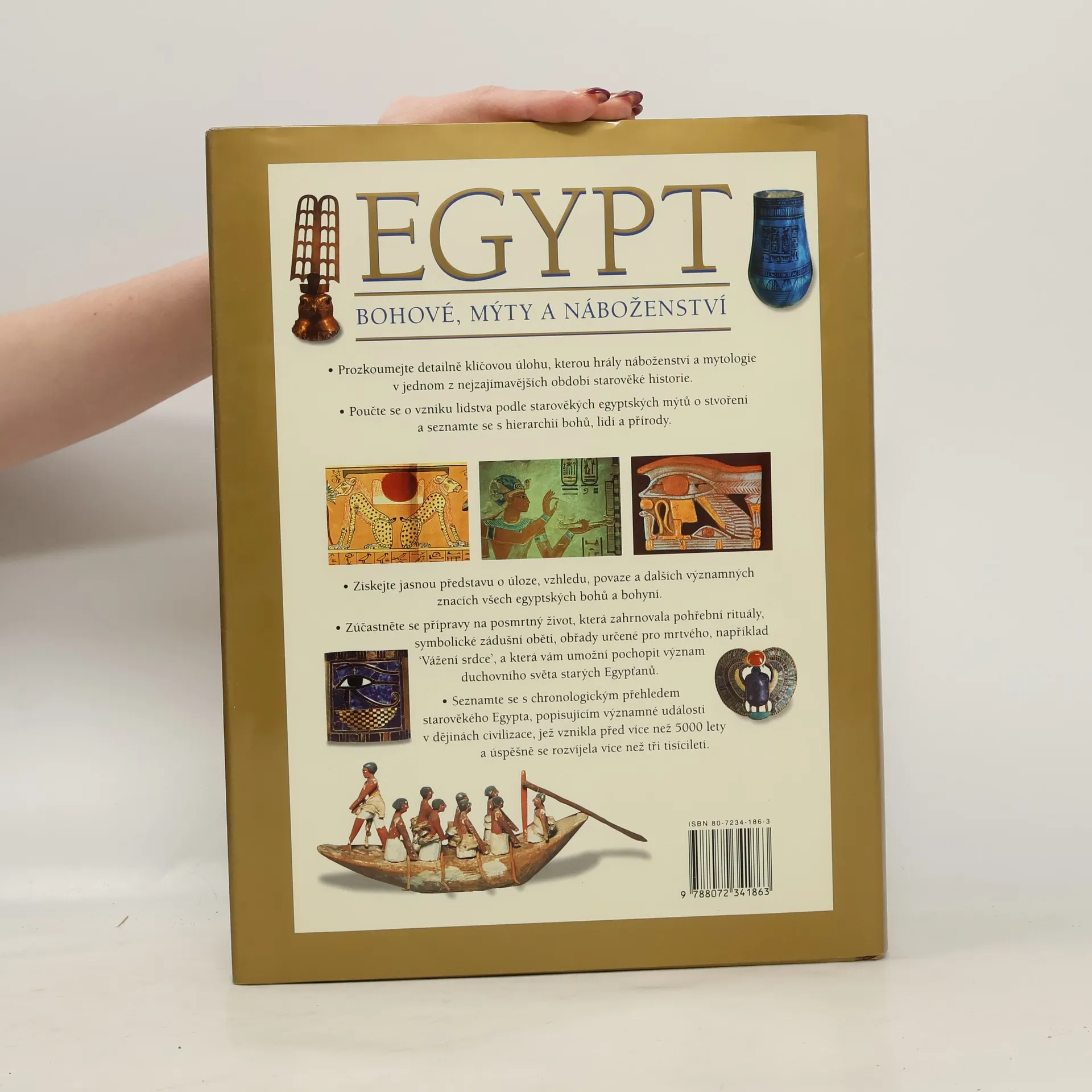 Fascinujicí průvodce mytologií a náboženstvím starověkého Egypta, velkolepými chrámy, hrobkami a poklady první vyspělé civilizace na světě. Odborný text popisuje nejen komplikované mýty, jednotlivé bohy, bohyně a božskou úlohu krále, ale také celý systém náboženských obřadů, který se vyvinul v průběhu několika tisíciletí.