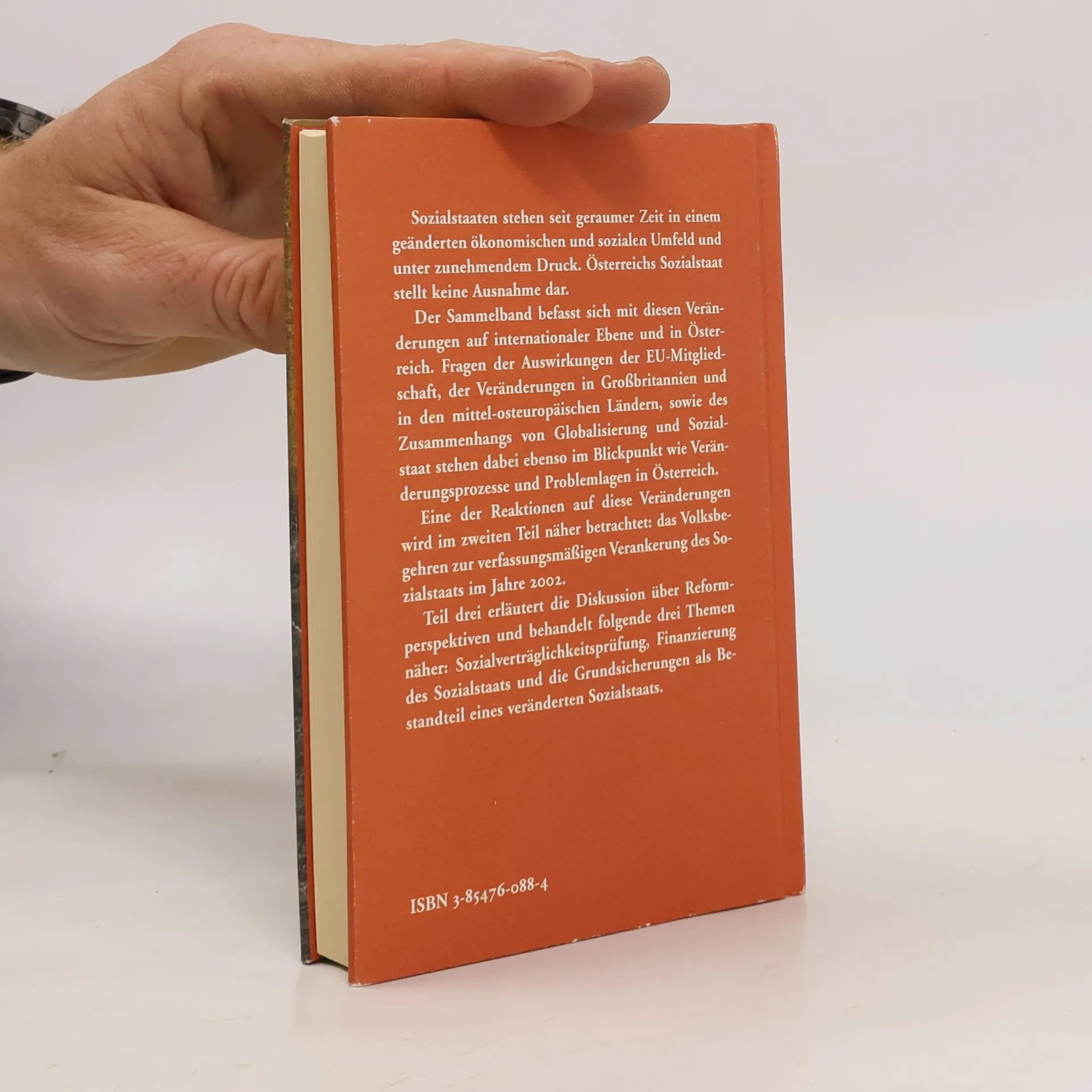 In der Wohlfahrtsforschung besteht Konsens, dass Sozialstaaten seit geraumer Zeit in einem neuen öko-sozialen Umfeld unter zunehmendem Reformdruck stehen. Österreich ist innerhalb der EU keine Ausnahme und darf als Modell für existentielle Fragen des Wohlfahrtstaats gelten. Teil I des Sammelbandes befasst sich mit Veränderungen auf internationaler Ebene. Im Zentrum stehen die Auswirkungen der EU-Mitgliedschaft, die Veränderungen in Großbritannien und in den mittel-osteuropäischen Ländern sowie der Zusammenhang von Globalisierung und Sozialstaat. Teil II befasst sich mit der österreichischen Entwicklung als Reaktionen auf diese Veränderungen - Stichworten sind u. a. „soziale Ausgrenzug“, „Armut“, „atypische Beschäftigungsverhältnisse.“ Teil III widmet sich dem Volksbegehren „Sozialstaat Österreich“ und Teil IV setzt sich mit Reformperspektiven auseinander und behandelt die Themen Sozialverträglichkeitsprüfung, (SVP), die Finanzierung des Sozialstaats sowie das Modell der Grundsicherung als Element eines Umbaus des tradierten Sozialstaats.
