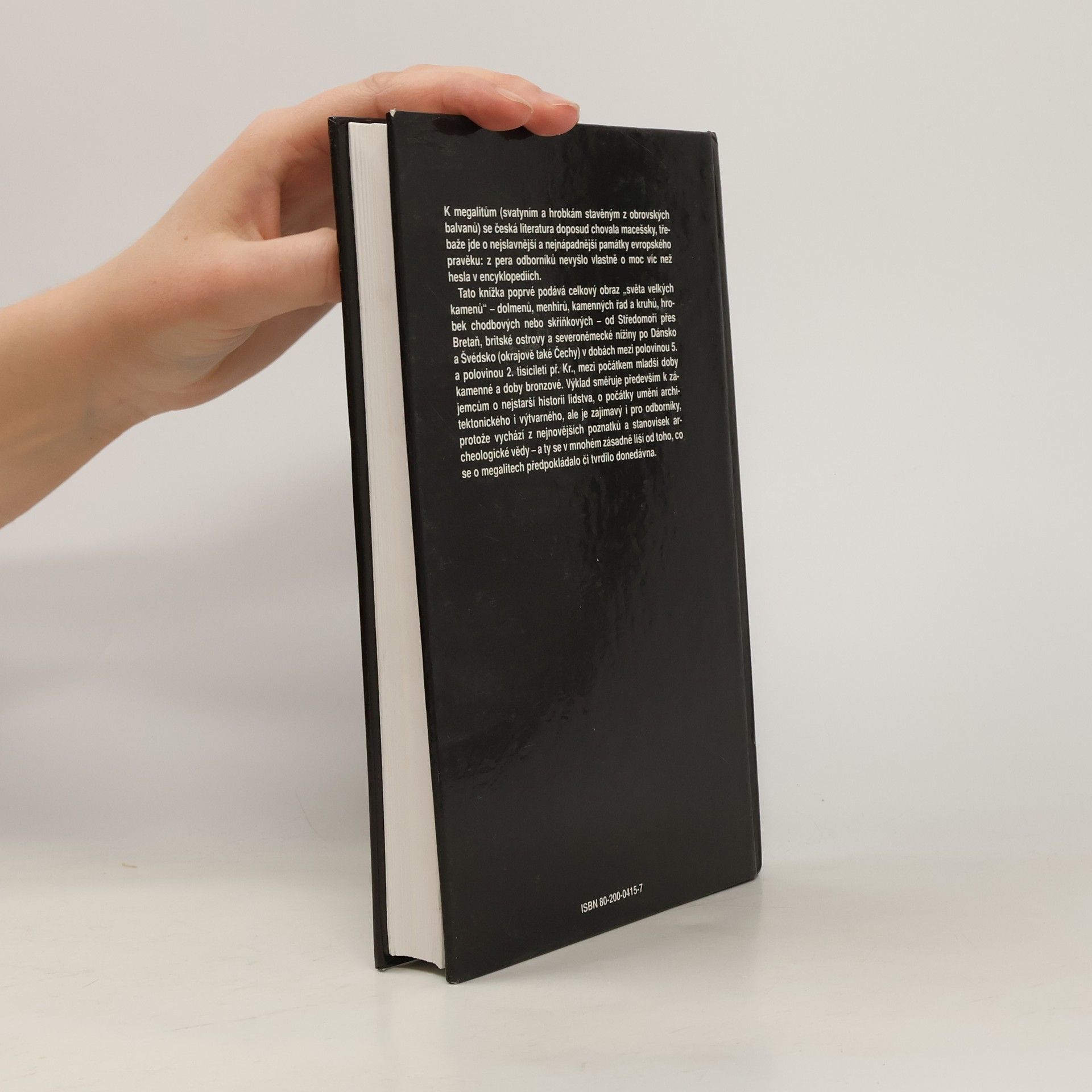 Knížka podává celkový obraz „světa velkých kamenů“ – dolmenů, menhirů, kamenných řad a kruhů, hrobek chodbových nebo skříňkových – od Středomoří přes Bretaň, britské ostrovy a severoněmecké nížiny po Dánsko a Švédsko (okrajově taky Čechy) v dobách mezi polovinou 5. a polovinou 2. tisíciletí př. Kr., mezi počátkem mladší doby kamenné a doby bronzové.