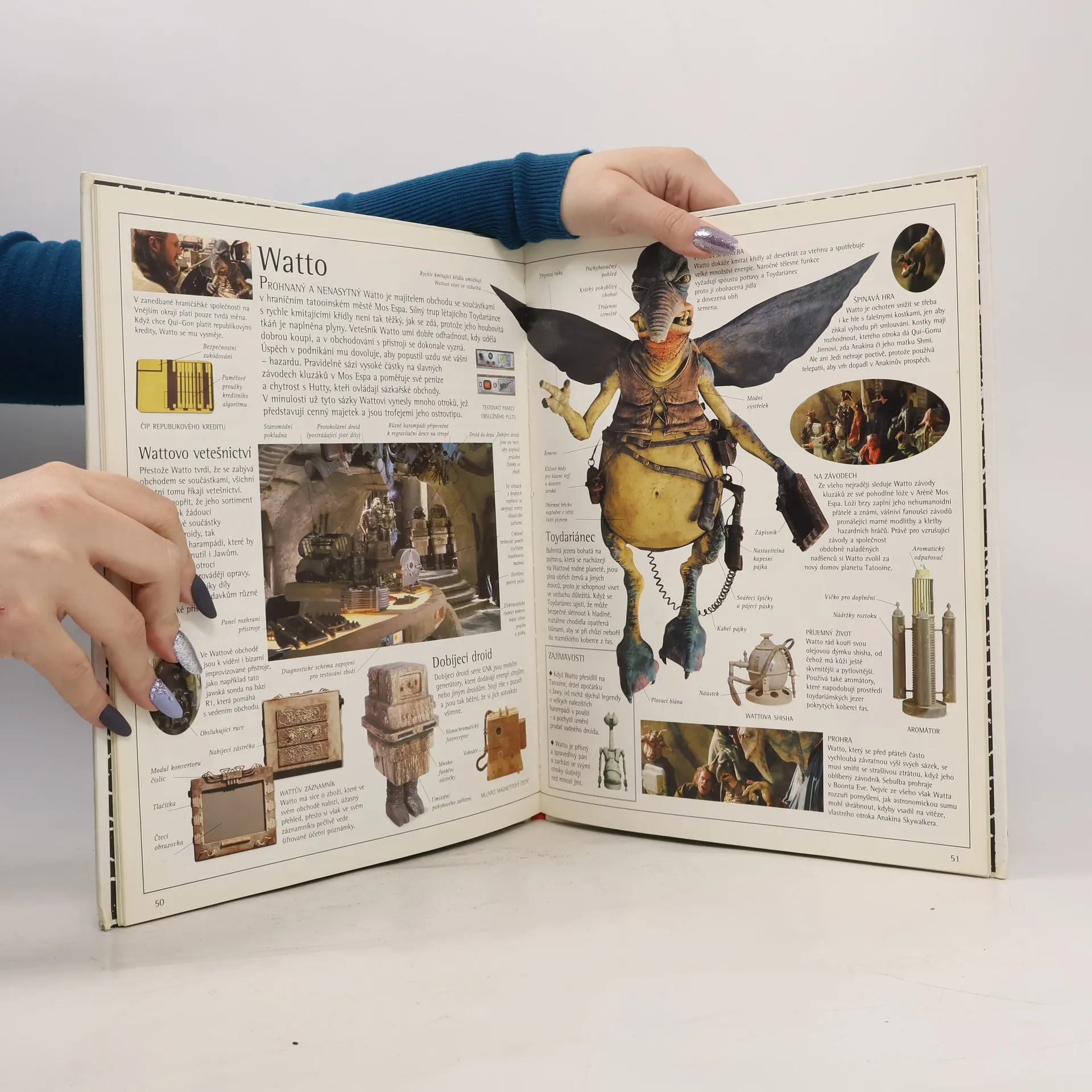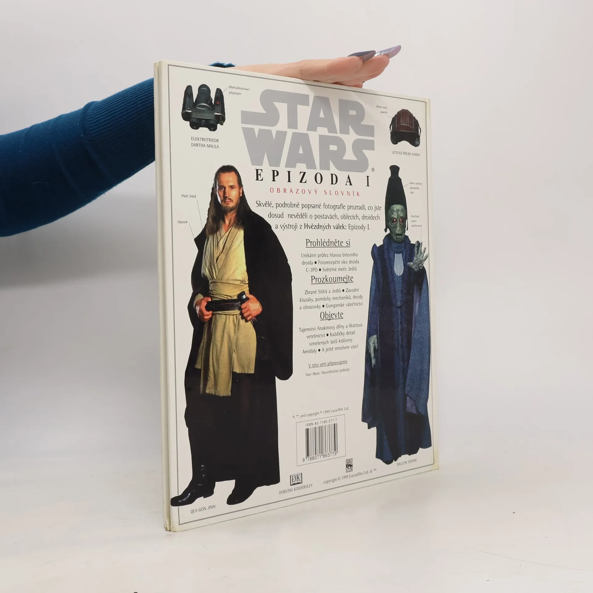 Skvělé, podrobně popsané fotografie prozradí, co jste dosud nevěděli o postavách, oblecích, droidech a výstroji z Hvězdných válek: Epizody I. Prohlédněte si: •Unikátní průřez hlavou bitevního droida •Fotorecepční oko droida C-3PO •Světelné meče Jediů Prozkoumejte: •Zbraně Sithů a Jediů •Závodní kluzáky, pomůcky mechaniků, droidy a obrazovky •Gunganské válečnictví Objevte: •Tajemství Anakinovy dílny a Wattova vetešnictví •Každičký detail vznešených šatů královny Amidaly •A ještě mnohem více!