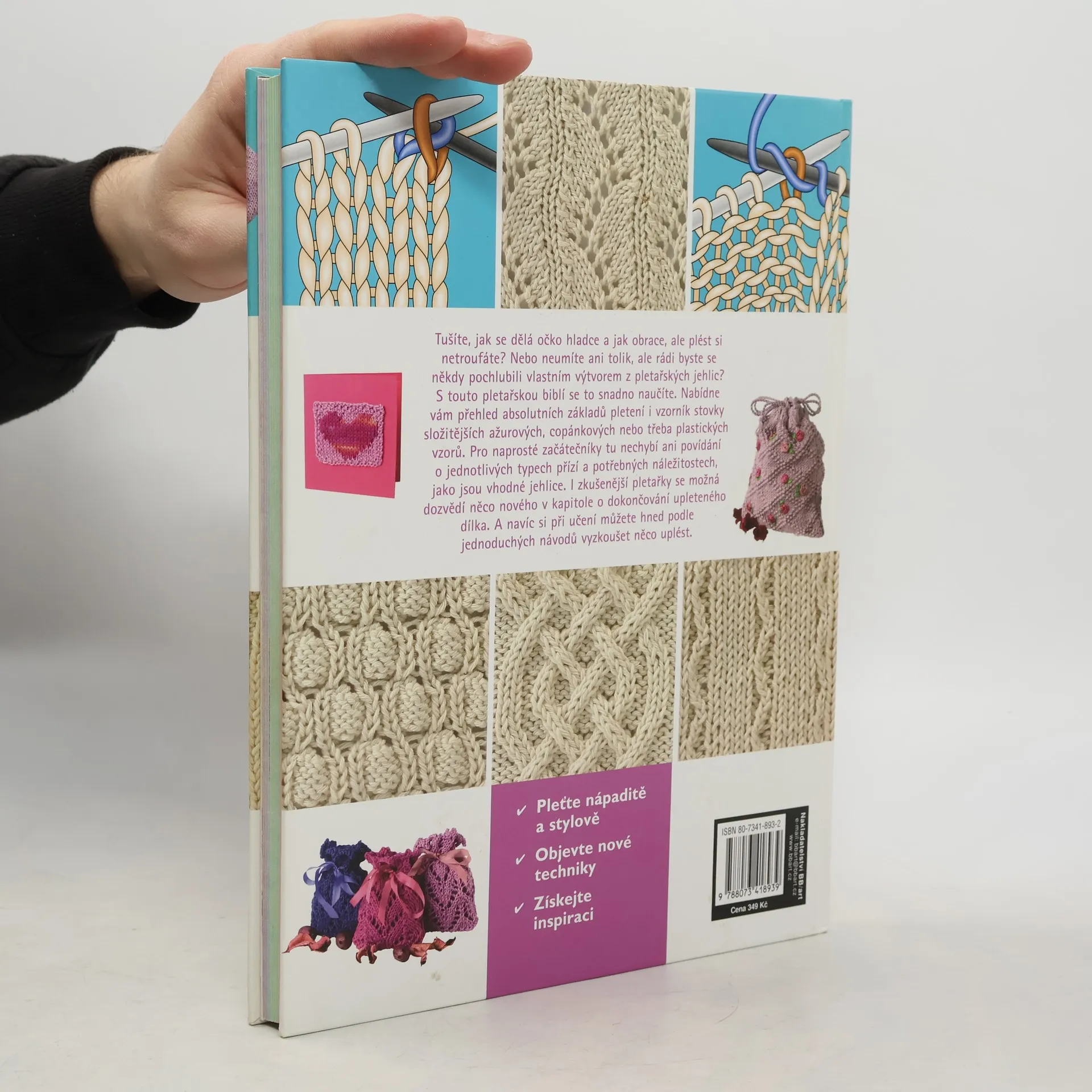 Tušíte, jak se dělá očko hladce a jak obrace? Ale plést si netroufáte? Nebo neumíte ani tolik, ale rádi byste se někdy pochlubili vlastním výtvorem z pletařských jehlic? S touto pletařskou biblí se to snadno naučíte. Nabídne vám přehled absolutních základů pletení i vzorník stovky složitějších ažurových, copánkových nebo třeba plastických vzorů. Pro naprosté začátečníky tu nechybí i povídání o jednotlivých typech přízí a potřebných náležitostech, jako jsou vhodné jehlice. I zkušenější pletařky se možná doví něco nového v kapitole o dokončování upleteného dílka. A navíc si při učení můžete hned podle jednoduchých návodů vyzkoušet něco uplést. Tak se do toho pusťte, Claire Cromptonová vás povede.
