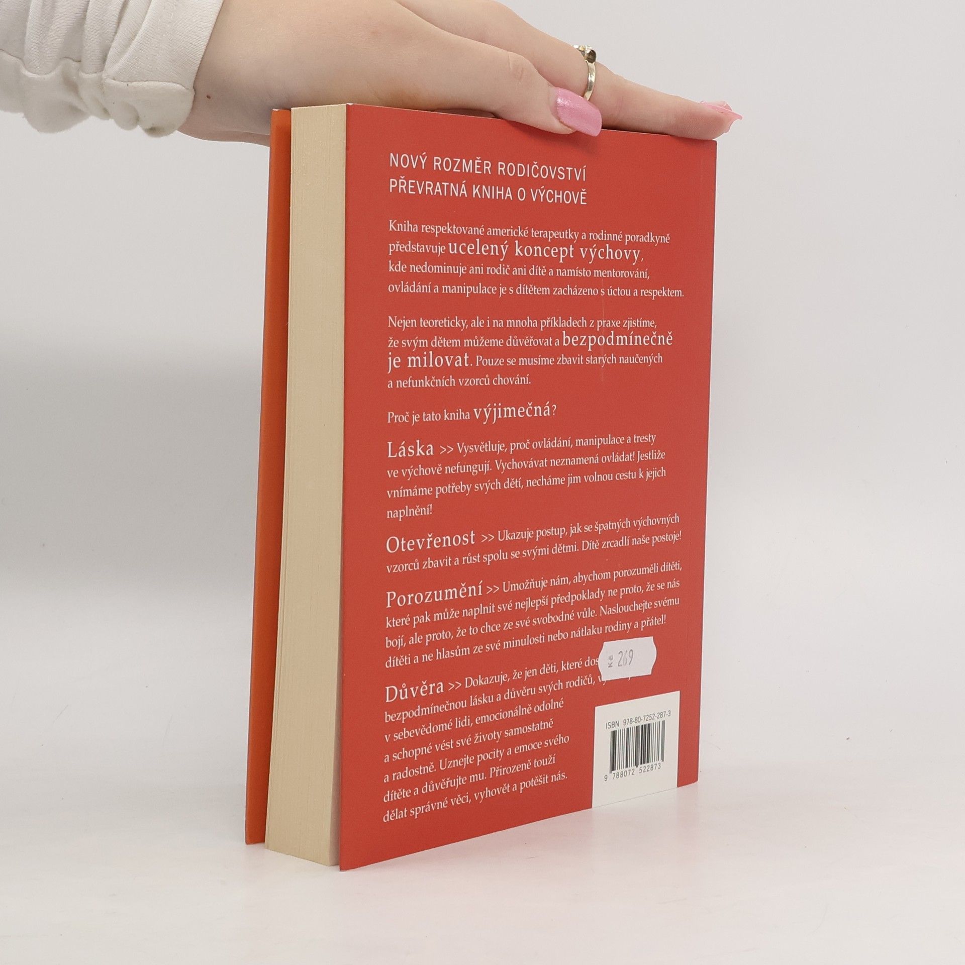 Kniha respektované americké terapeutky a rodinné poradkyně představuje ucelený koncept výchovy, kde nedominuje ani rodič ani dítě a namísto mentorování, ovládání a manipulace je s dítětem zacházeno s úctou a respektem. Nejen teoreticky, ale i na mnoha příkladech z praxe zjistíme, že svým dětem můžeme důvěřovat a bezpodmínečně je milovat. Pouze se musíme zbavit starých naučených a nefunkčních vzorců chování. Proč je tato kniha výjimečná? láska- vysvětluje, proč ovládání, manipulace a tresty ve výchově nefungují. otevřenost- ukazuje postup, jak se špatných výchovných vzorců zbavit a růst spolu se svými dětmi. porozumění- umožňuje nám, abychom porozuměli dítěti, které pak může naplnit své nejlepší předpoklady. důvěra- dokazuje, že jen děti, které dostaly bezpodmínečnou lásku a důvěru svých rodičů, vyrůstají v sebevědomé lidi, emocionálně odolné a schopné vést své životy samostatně a radostně.
