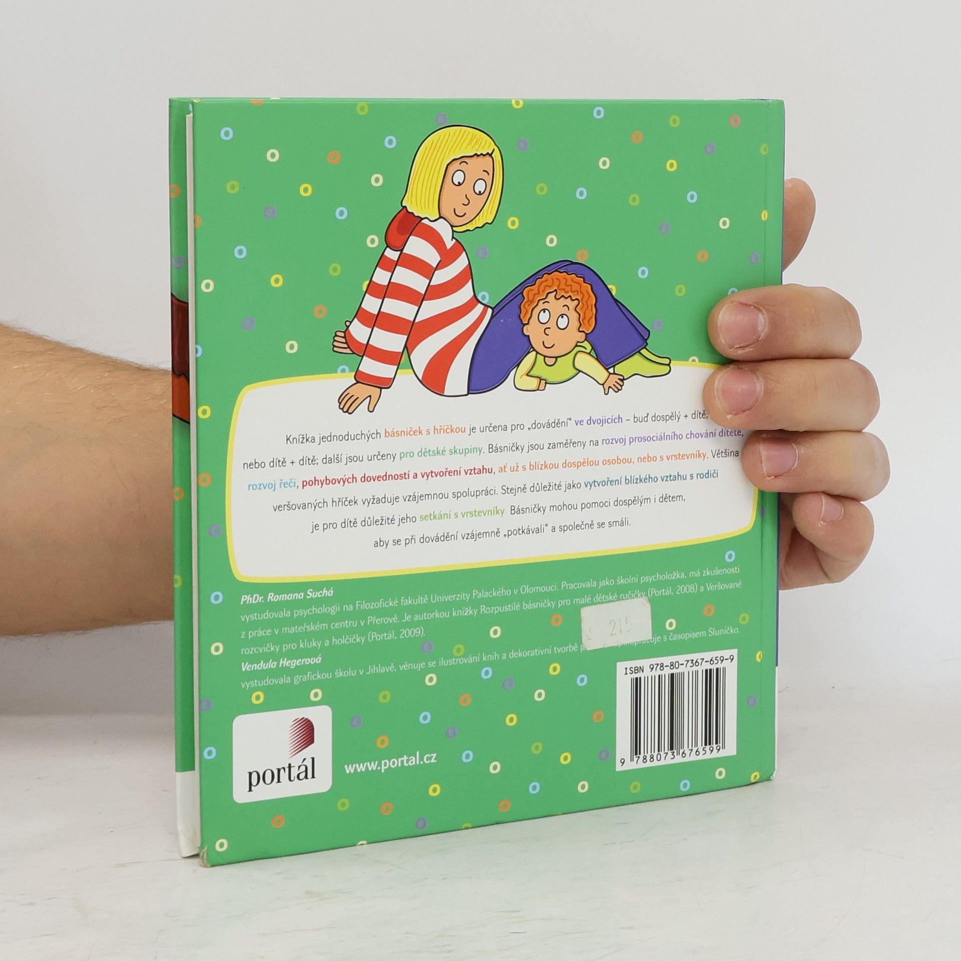 Knížka jednoduchých básniček s hříčkou je určena pro dovádění ve dvojicích - buď dospělý + dítě, nebo dítě + dítě. Další jsou určeny pro dětské skupiny. Básničky jsou zaměřeny na rozvoj prosociálního chování dítěte, rozvoj řeči, pohybových dovedností a vytvoření vztahu, ať už s blízkou dospělou osobou, nebo s vrstevníky. Většina veršovaných hříček vyžaduje vzájemnou spolupráci. Vytvoření blízkého vztahu s mámou a tátou je pro dítě velmi významné. Neméně důležité je však i jeho setkání s vrstevníky. Básničky mohou pomoci dospělým i dětem, aby se při dovádění vzájemně „potkávali“ a společně se smáli.
