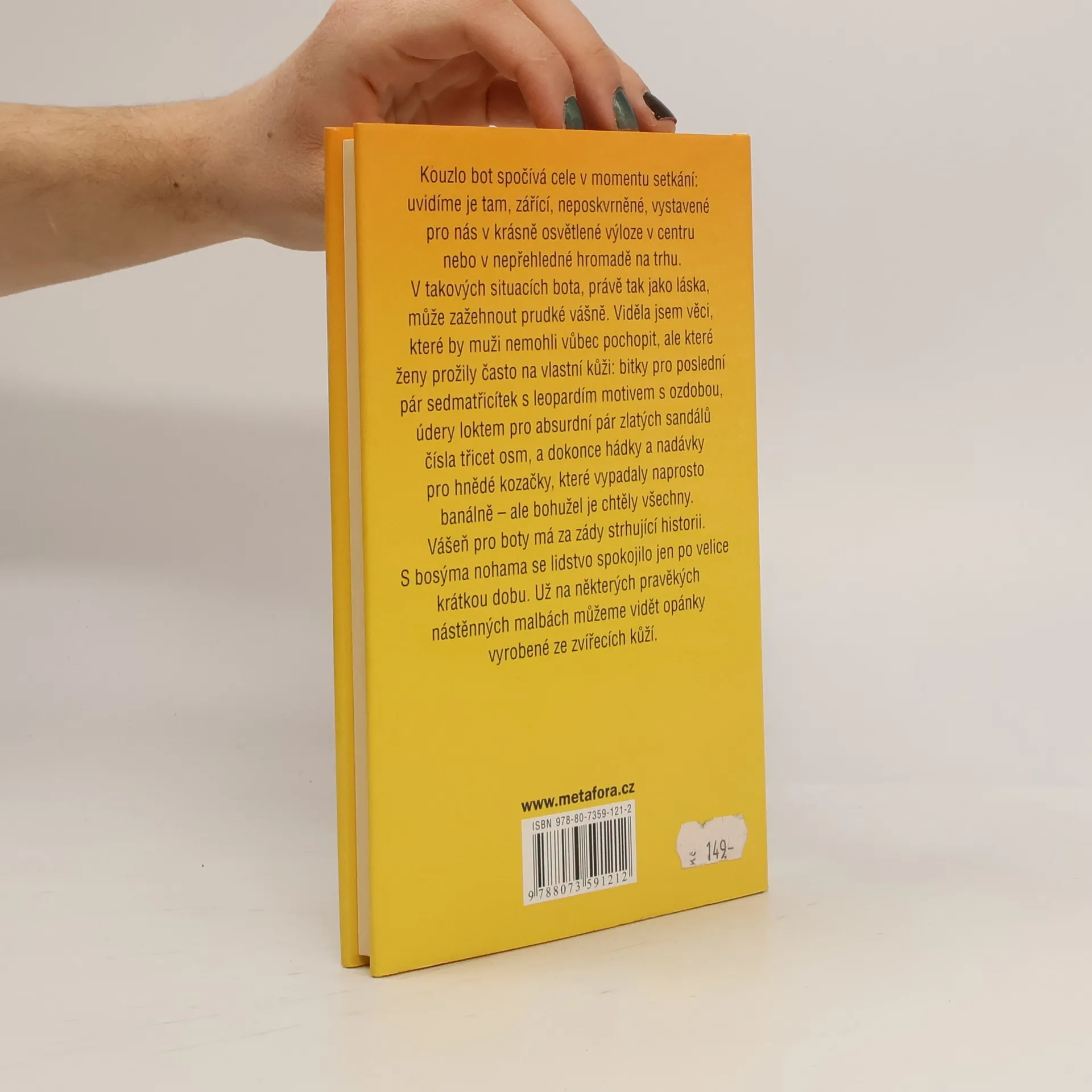 Lodičky, farmářky, dřeváky, kozačky, sandály, pantofle, polobotky, žabky, mokasíny… zkrátka všechny ty úžasné botky, botičky, boty, naše lásky… Boty jsou vášní mnoha žen, a přestože je nadšeně kupujeme, obdivujeme a vystavujeme na odiv, je toho ještě mnoho, co o nich nevíme. Tahle knížka vás zábavnou a neodolatelně humornou formou seznámí s jednotlivými typy a modely. Dozvíte se, co si obouvají filmové hvězdy, a ovšemže nesmějí chybět ani jména slavných návrhářů...