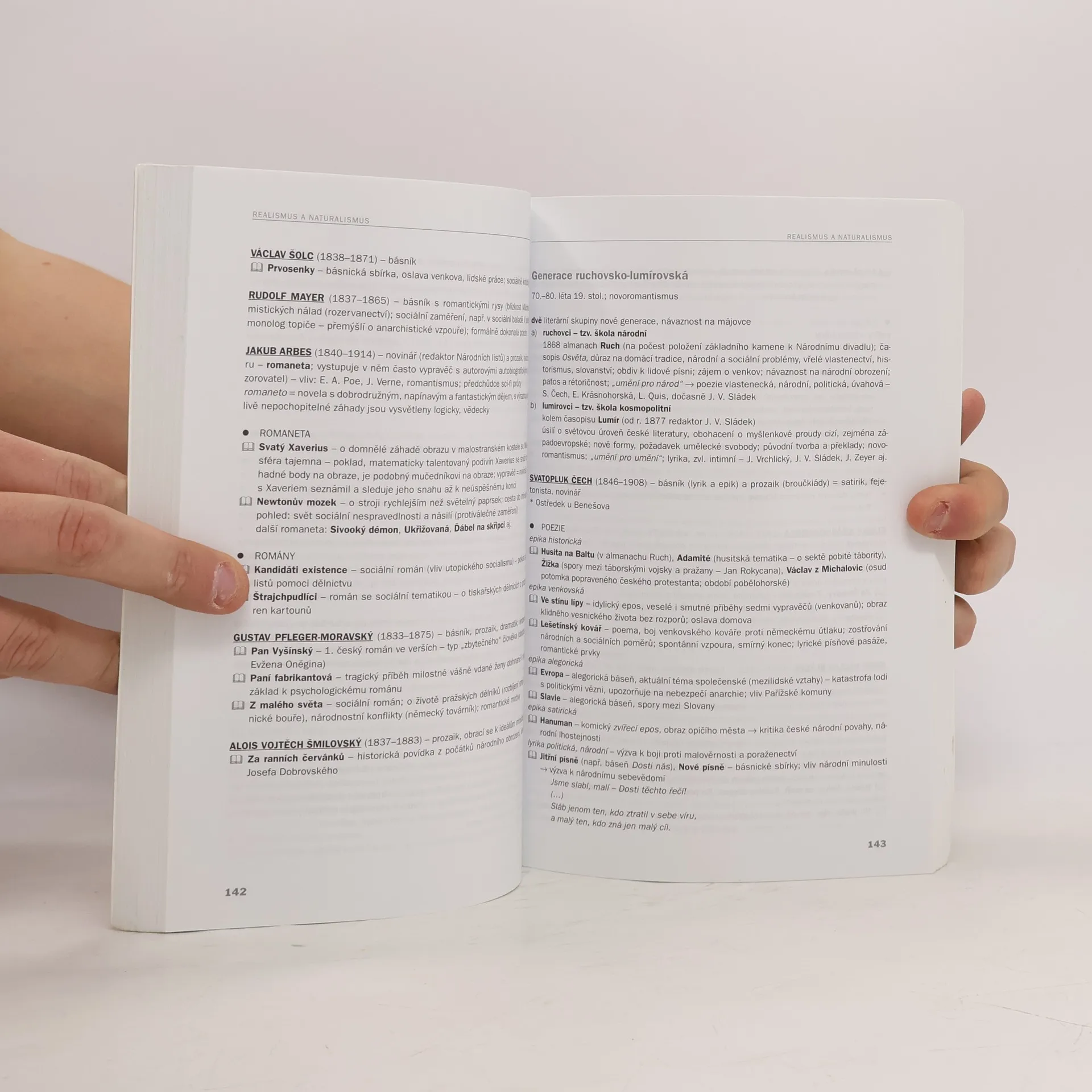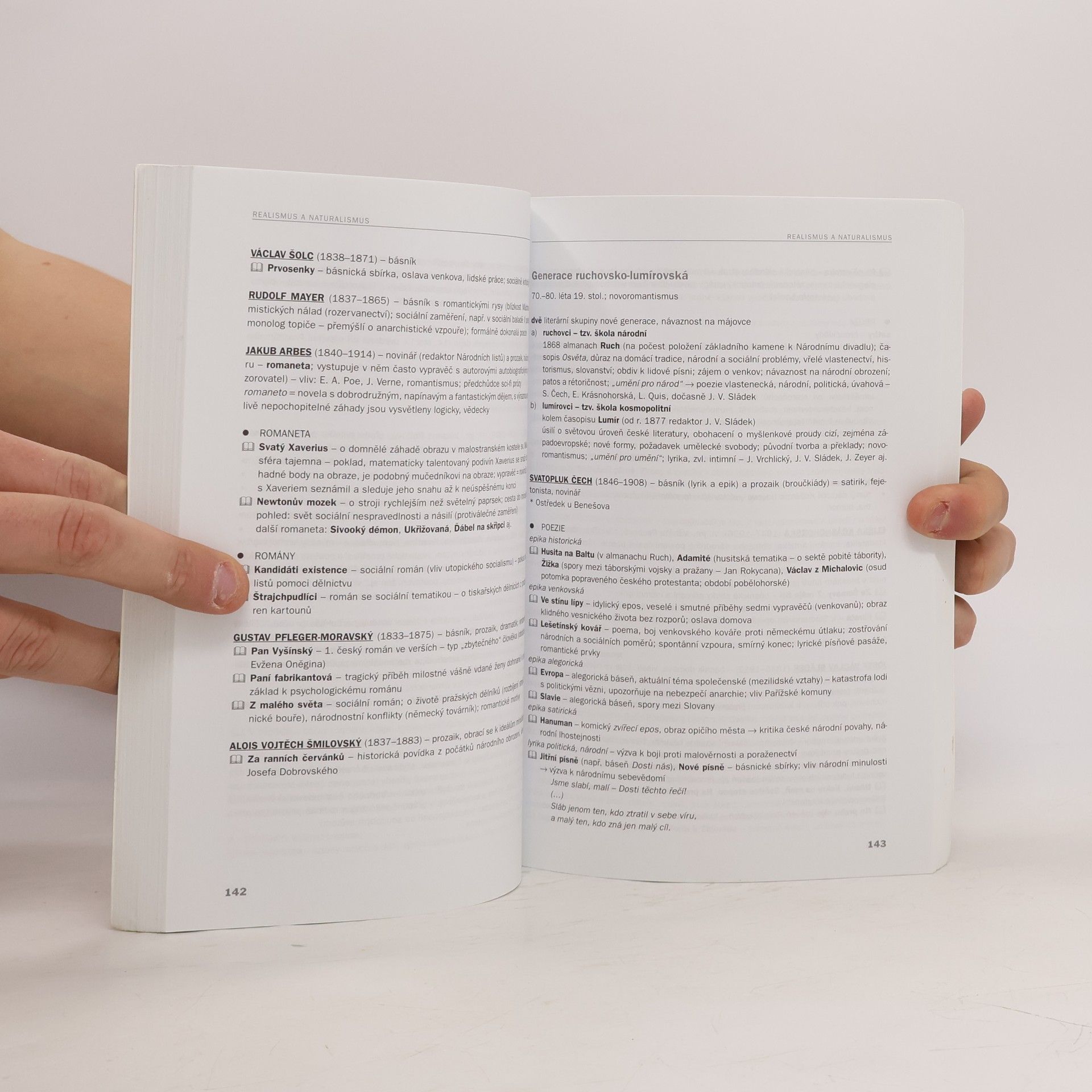 Přehled dějin české i světové literatury od počátků písemnictví do současnosti. Je určen zejména studentům středních škol, ale je možné ho použít i k dalšímu studiu na vysokých školách humanitního zaměření. Jednotlivé kapitoly začínají stručnou charakteristikou daného období. Názvy stěžejních literárních děl a jména významných autořů jsou graficky zvýrazněna. Text je vzhledem k šíři tématu koncipován heslovitě. Publikace seznamuje i se stručnými základy literární teorie, okrajově se dotýká struktury literárního díla, literárních druhů a žánrů atd. Doplňuje ji rejstřík věcných pojmů a jmenný rejstřík.