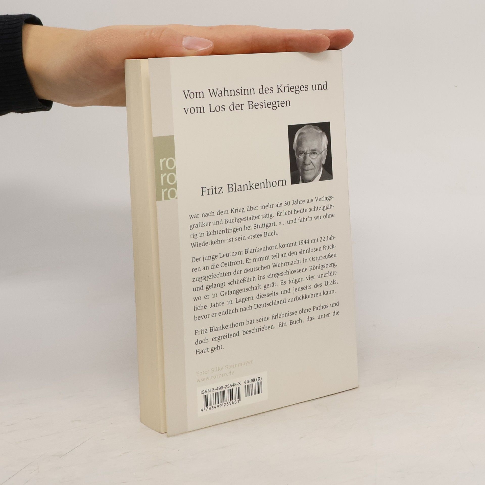 Vom Wahnsinn des Krieges und vom Los der Besiegten. Der junge Leutnant Blankenhorn kommt 1944 mit 22 Jahren an die Ostfront. Er nimmt teil an den sinnlosen Rückzugsgefechten der deutschen Wehrmacht in Ostpreußen und gelangt schließlich ins eingeschlossene Königsberg, wo er in Gefangenschaft gerät. Es folgen vier unerbittliche Jahre in Lagern diesseits und jenseits des Urals, bevor er endlich nach Deutschland zurückkehren kann. Fritz Blankenhorn hat seine Erlebnisse ohne Pathos und doch ergreifend beschrieben. Ein Buch, das unter die Haut geht. Fritz Blankenhorn war bereits über 80 Jahre alt, als er 2004 seine Erinnerungen an die Jahre der Kriegsgefangenschaft veröffentlichte. Das Buch wurde ein großer Erfolg und hat bereits zahlreiche Auflagen erlebt. Nach dem Krieg war er über 30 Jahre lang als Verlagsgrafiker und Buchgestalter tätig. Fritz Blankenhorn ist am 22. April 2011 im Alter von 89 Jahren verstorben.