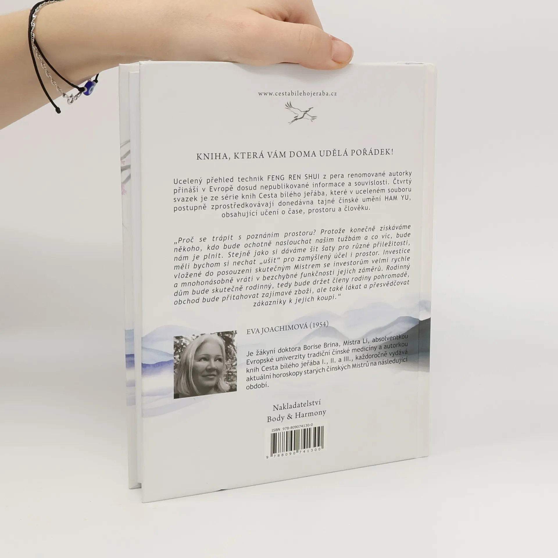 Kniha přináší přehled technik FENG SHUI a dosud nepublikované informace a souvislosti. Čtvrtý svazek ze série Cesta bílého jeřába zprostředkovává tajné čínské umění HAM YU, které se zabývá učením o čase, prostoru a člověku. Proč se trápit s poznáním prostoru? Protože získáváme partnera, který naslouchá našim přáním a plní je. Stejně jako si necháváme šít šaty pro různé příležitosti, měli bychom si „ušít“ prostor pro zamýšlený účel. Investice do posouzení skutečným Mistrem se rychle vrátí v bezchybné funkčnosti. Rodinný dům se stane skutečně rodinným, obchod přitahuje zajímavé zboží a láká zákazníky. Je důležité utvořit prostor, kde se lidé cítí dobře, a zároveň začlenit do něj člověka, aby se i on cítil komfortně. Červená mašlička v rohu bohatství nebo bambusová flétnička mohou prostoru prospět, ale zároveň mohou člověku ublížit. Autorka Eva Joachimová (1954) je žákyní doktora Borise Brina a Mistra Li, absolventkou Evropské univerzity tradiční čínské medicíny a autorkou předchozích svazků série. Každoročně vydává aktuální horoskopy starých čínských Mistrů.