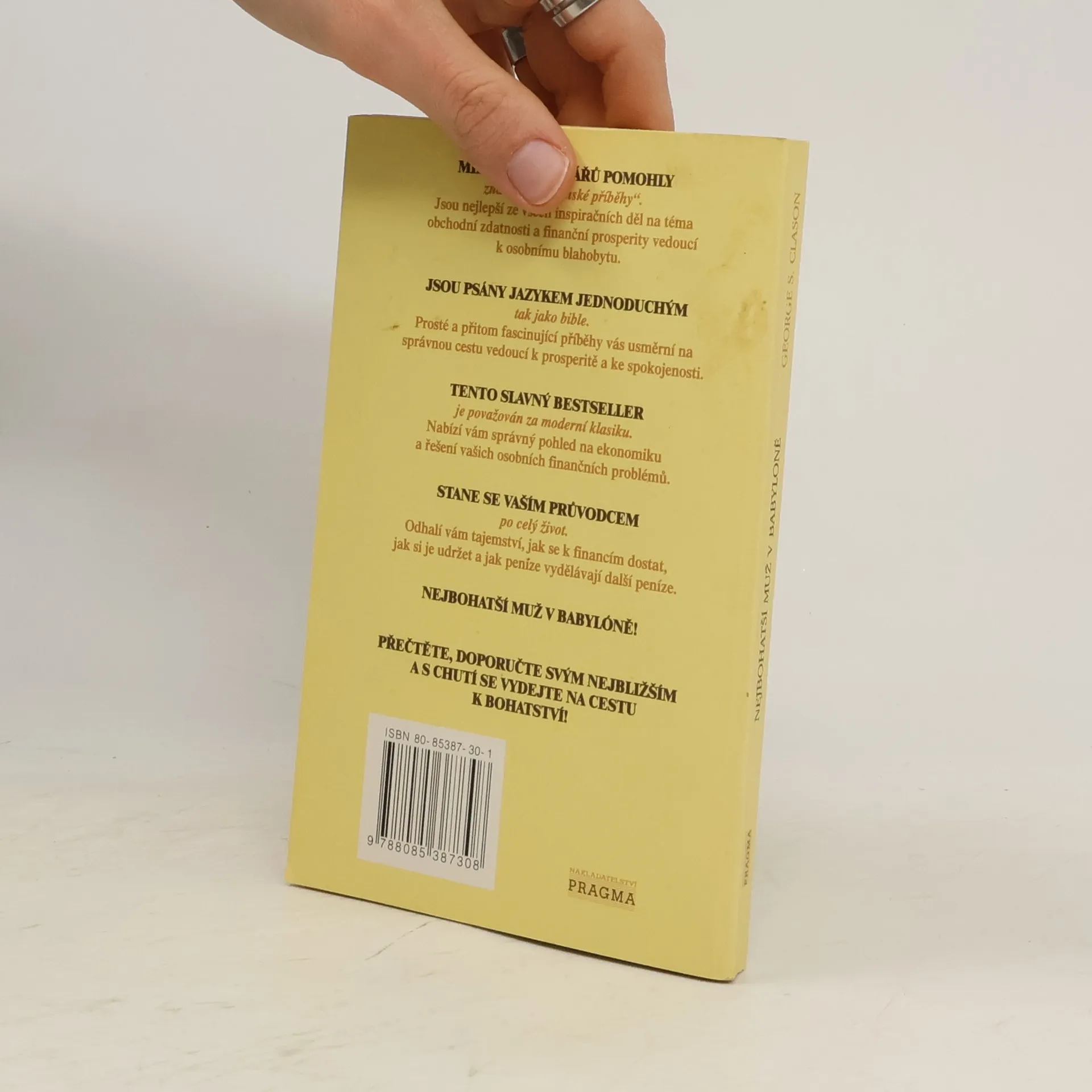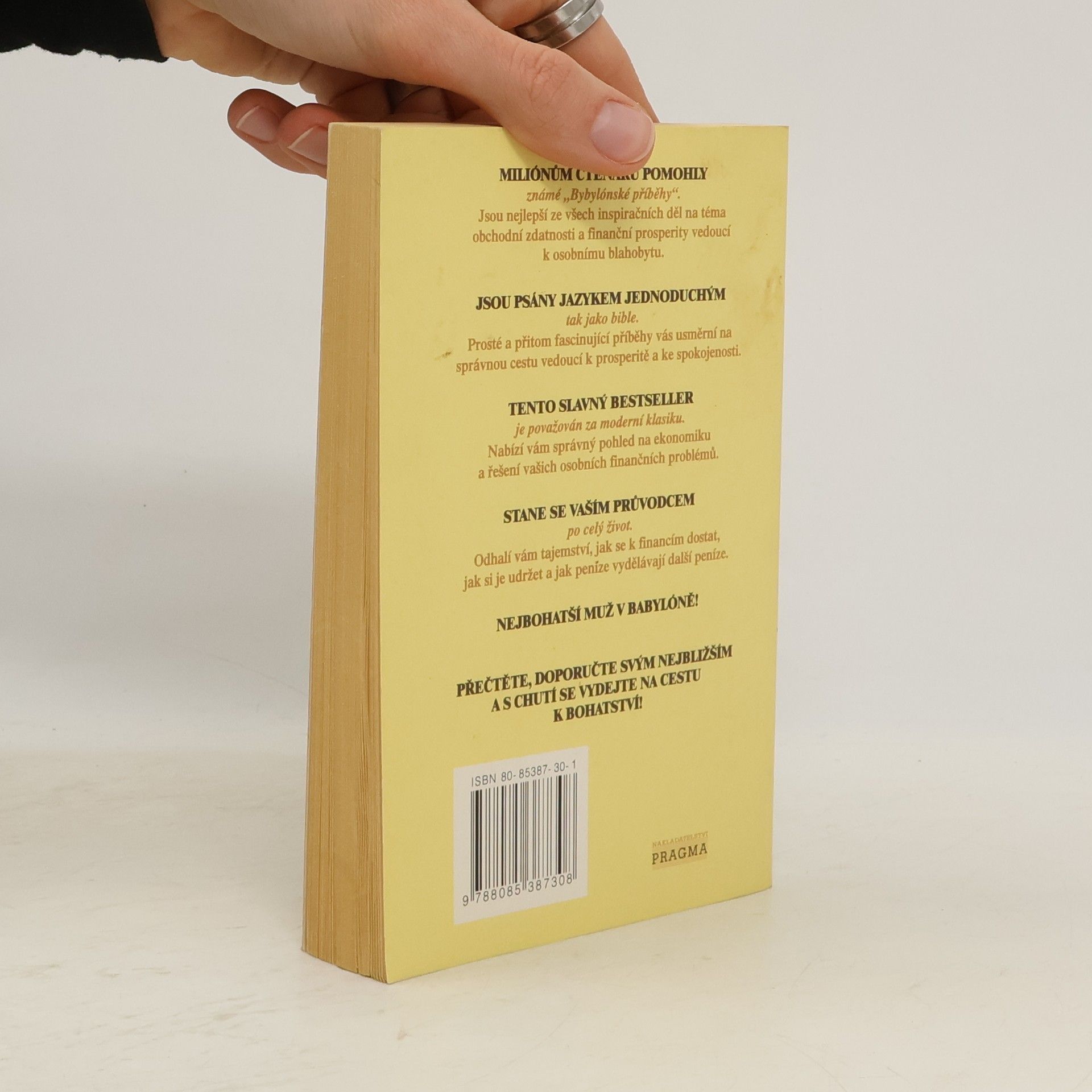 Nejlepší kniha, která kdy byla napsána na téma bohatství. Je vynikající inspirací a návodem, jak zbohatnout! Nejlepší ze všech inspiračních děl na téma obchodní zdatnosti a finanční prosperity vedoucí k osobnímu blahobytu. Prosté a přitom fascinující příběhy vás usměrní na správnoucestu vedoucí k úspěchu a ke spokojenosti, nabídnou vám správný pohled na ekonomiku a řešení vašich osobních problémů.Odhalí vám tajemství, jak se k financím dostat, jak si je udržet a jak peníze vydělávají další peníze.