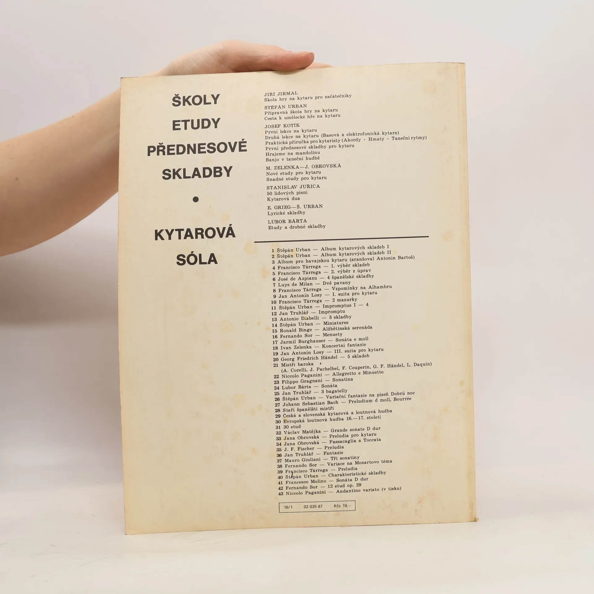 Škola hry na kytaru pro začátečníky Jiřího Jirmala se od svého prvního vydání před třiceti lety stala jednoznačně nejužívanějším pedagogickým materiálem pro výuku kytarové hry. Na základě kombinací technických cvičení a skladeb hudebního klasicizmu probírá všechny základní technické postupy nutné pro zvládnutí tzv. klasické hry na kytaru. Důsledná je rovněž i hudebně-teoretická průprava, najdeme zde i přehled akordů v kontextu jednotlivých tónin.
