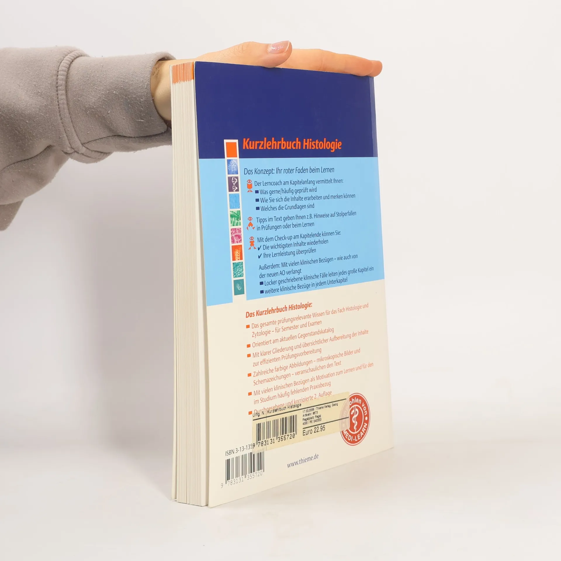 - Das gesamte prüfungsrelevante Wissen für das Fach Histologie und Zytologie für Ihre Prüfungen im Semester und das Physikum- Orientiert am aktuellen Gegenstandskatalog- Die klare Gliederung gibt Ihnen eine gute Übersicht und hilft Ihnen, sich effizient auf die Prüfung vorzubereiten.- Zahlreiche Abbildungen, mikroskopische Bilder und Schemazeichnungen veranschaulichen den Text und erleichtern das Verständnis.- Viele klinische Hinweise machen deutlich, wofür Sie diese Grundlagen lernen.Durchgesehene und korrigierte 3. Auflage, ergänzt mit den Inhalten zu den aktuellen Prüfungsfragen.