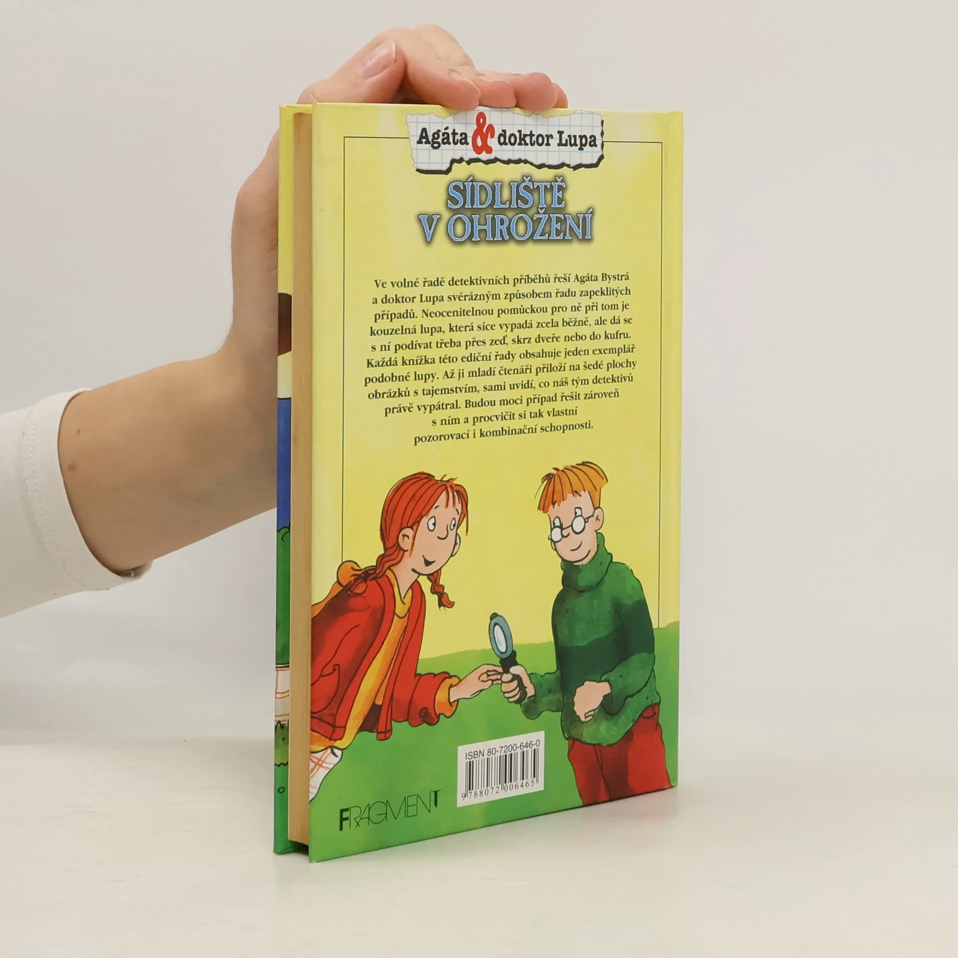 Agáta Bystrá a doktor Lupa opět v akci! Z obytného bloku na sídlišti, ve kterém bydlí dědečkův přítel Albert, se mají nájemníci ze dne na den vystěhovat a domy se mají demolovat. S tím se ale obyvatelé čtvrti nemohou smířit. Přijdou Agáta s Lupou na to, kdo za tím vším vězí? Oba malí detektivové sledují podezřelého majitele stavební firmy a zjišťují podivné skutečnosti... Ve volné řadě detektivních příběhů řeší Agáta Bystrá a doktor Lupa svérázným způsobem řadu zapeklitých případů. Neocenitelnou pomůckou pro ně při tom je kouzelná lupa, která sice vypadá zcela běžně, ale dá se s ní podívat třeba přes zeď, skrz dveře nebo do kufru. Každá knížka této série obsahuje jeden exemplář podobné lupy. Až ji mladí čtenáři přiloží na šedé plochy obrázků s tajemstvím, sami uvidí, co náš tým detektivů právě vypátral. Budou moci případ řešit zároveň s ním a procvičit si tak vlastní pozorovací i kombinační schopnosti.
