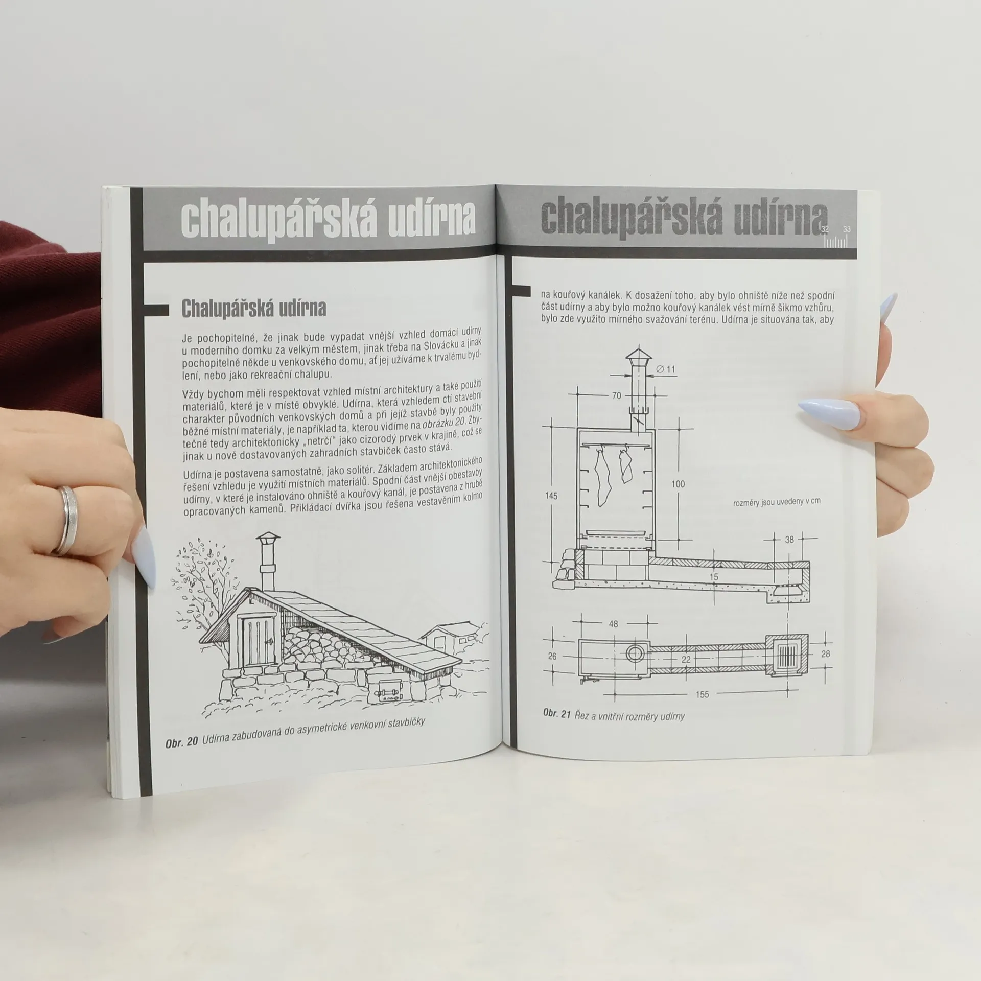 Publikace umožní čtenáři postavit a provozovat na své zahradě několik různých typů udíren. Podrobně je rozebrána příprava a stavba základní udírny, ostatní konkrétní typy jsou popsány včetně přesných vyobrazení s rozměry a radami k jejich stavbě, resp. instalaci, a používání. Kniha je doplněna recepty k přípravě masa, zeleniny a příloh v grilovacích udírnách.