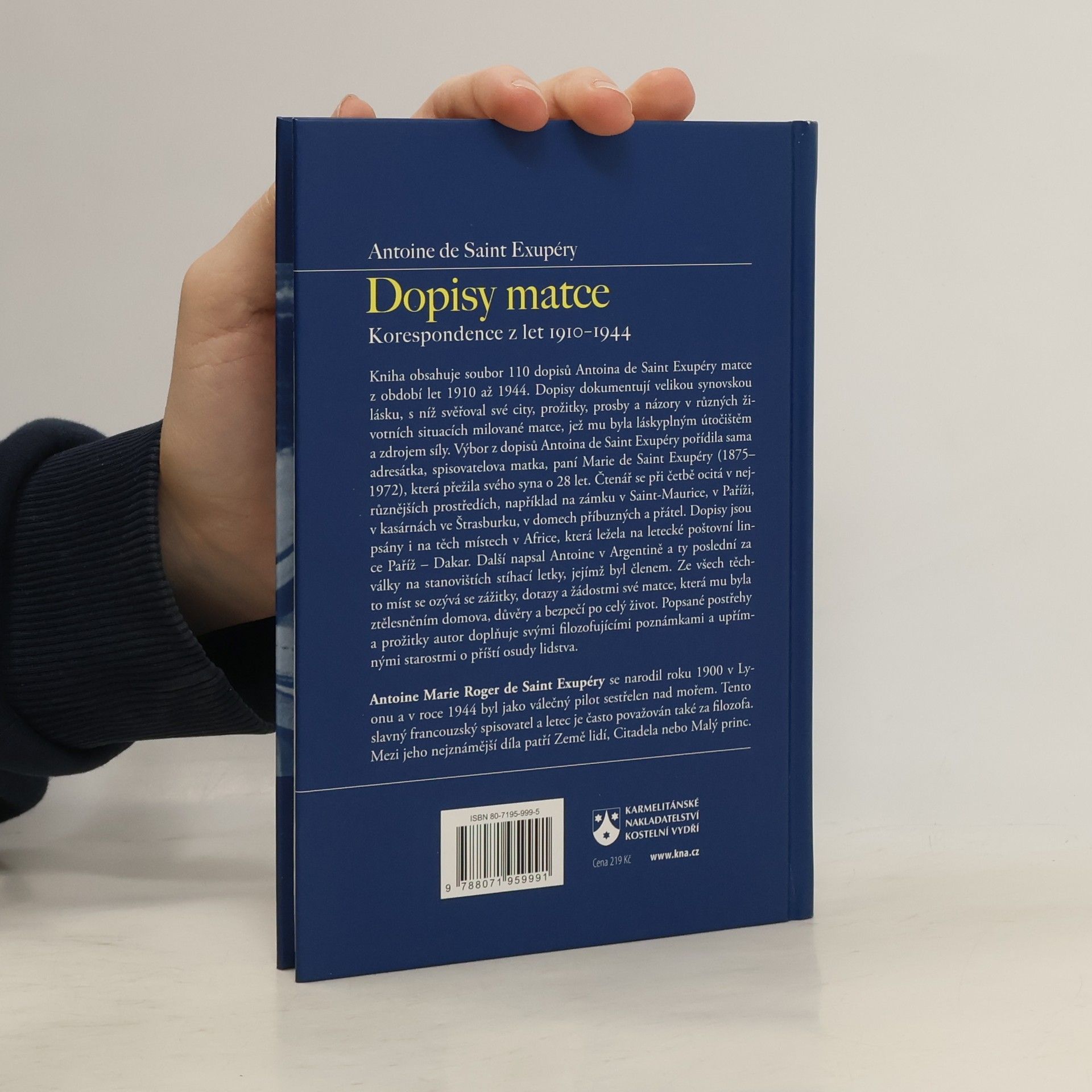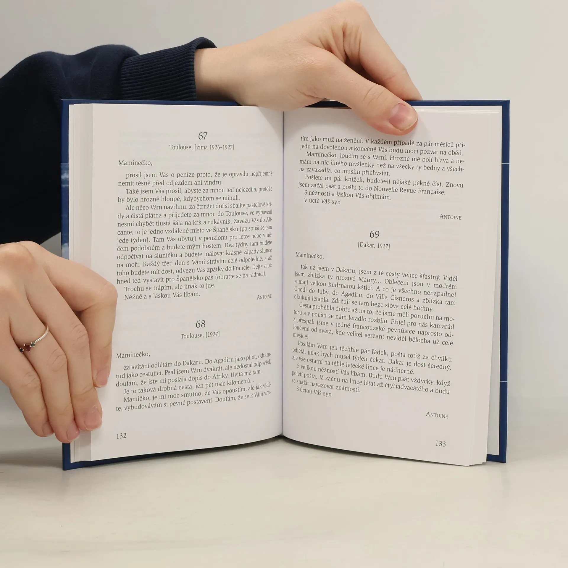 Korespondence z let 1910 - 1944. Kniha obsahuje soubor 110 dopisů Antoina de Saint-Exupéryho matce z období let 1910 až 1944. Dopisy dokumentují velikou synovskou lásku, ve které se svěřoval se svými city, prožitky, prosbami a názory. Výbor z dopisů pořídila sama adresátka, která přežila slavného syna o 28 let. Antoine se po celý dospělý život ocital v situacích, kdy byl nucen vedle zápasů vnitřních bojovat i s nesčetnými vnějšími nesnázemi. Texty dopisů dokumentují všechny jeho radosti i potíže: boj o potřebné vzdělání a profesní zakotvení, zápas s hmotnými nesnázemi, samotou, pískem i žízní v poušti. Dopisy jsou svědectvím nejen jeho cesty k milovanému povolání pilota, ale i jeho dráhy spisovatelské a nepřímo též jeho vztahu k Bohu; především jsou však dokladem veliké synovské lásky k matce, která mu byla láskyplným útočištěm a zdrojem duchovní síly. Čtenář se při četbě listů ocitá v nejrůznějších prostředích Francie (na zámku v Saint-Maurice, v Paříži, v kasárnách ve Štrasburku), na mnoha místech Afriky, na letecké poštovní lince Paříž-Dakar, i v Argentině, kde Antoin také působil. Vylíčené postřehy a prožitky jsou doprovázeny filozofujícími a osobními poznámkami, které dají českému čtenáři možnost poznat autora Citadely a Malého prince i z jiné, mnohem důvěrnější stránky.