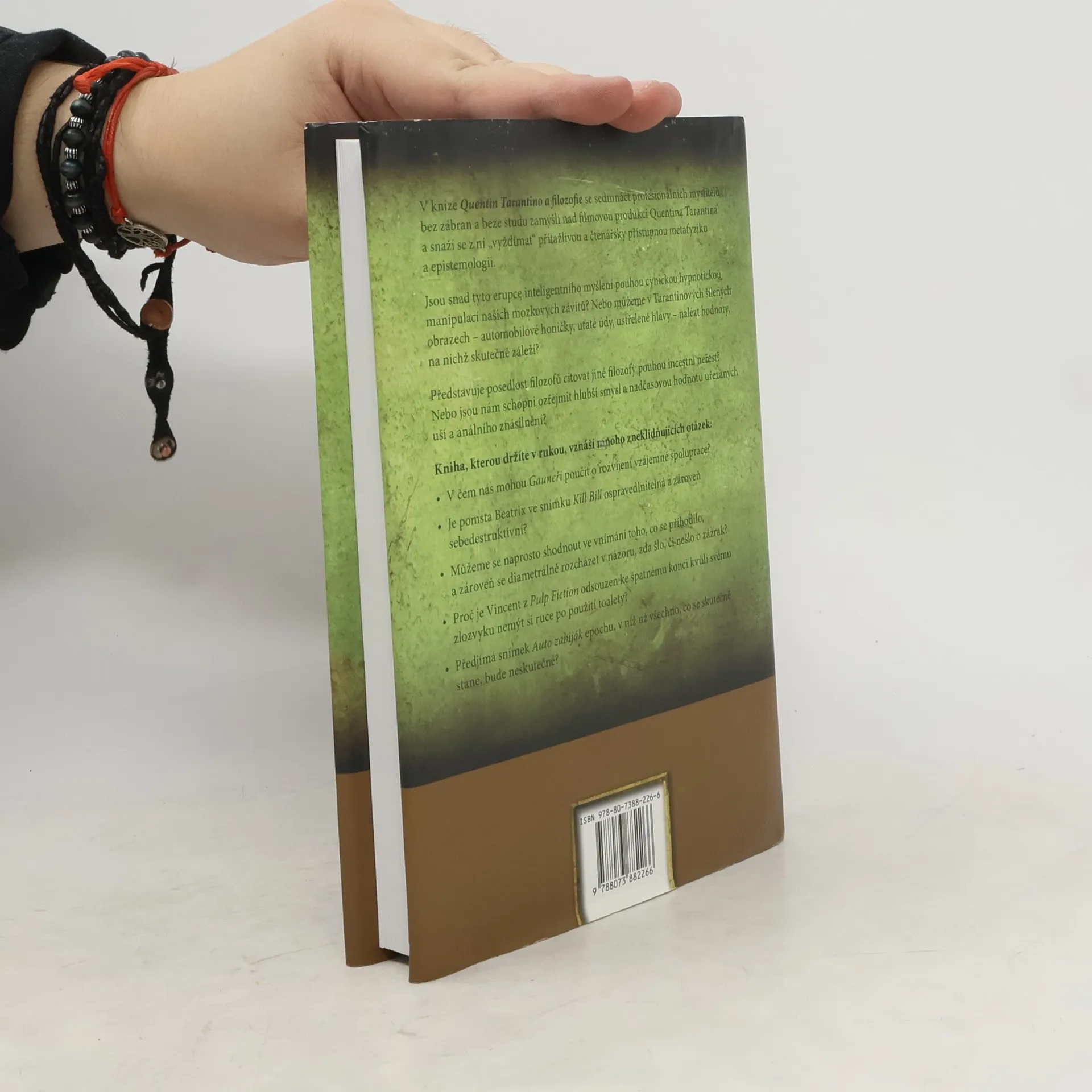 Filmy Quentina Tarantina jsou přímo ideálními náměty pro filozofické diskuse, přinášejí totiž závažné otázky týkající se spravedlnosti a etiky, násilí a agrese, řeší povahu příčinné souvislosti a toku času. V této vtipné kolekci článků není žádné téma tabu. Přecházejí od estetické meditace o potocích krve ve filmu Kill Bill k polemice o tom, zda je nevěsta hrdinkou, když je vedena pouze touhou po pomstě, či k otázce, zda se můžeme úplně shodnout na tom, co se stalo, a neshodnout se, zda to, co se stalo, byl zázrak… Jestliže milujete filmy Quentina Tarantina, pak byste měli otevřít tuto knihu a společně se sedmnácti filozofy hledat na tyto (a mnohé další) otázky odpovědi. Jejich pohled na osobu a dílo velkého filmového režiséra vám umožní spatřit jeho tvorbu úplně novýma očima.