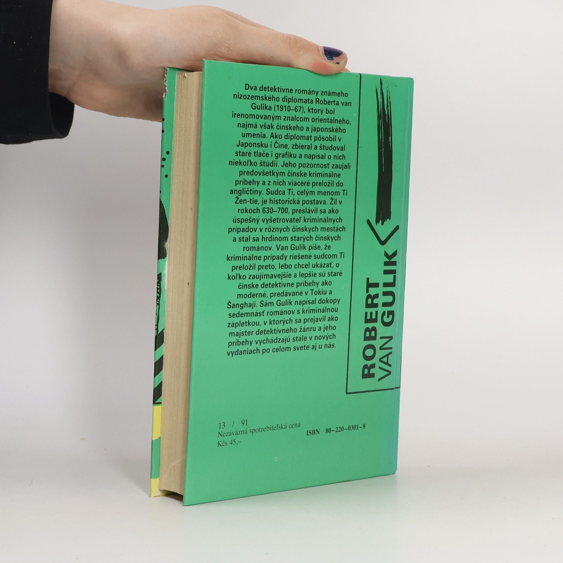 Prípad čínskeho zlata Sudca Ti sa ešte nestihol poriadne ohriať v sudcovskom kresle v zastrčenom okrese Peng-laj, keď sa musí pustiť do vyšetrovania vraždy svojho predchodcu. Zložitý prípad, zjavne súvisiaci s pašovaním zlata, skomplikuje záhadné zmiznutie súdneho pisára a nevesty bohatého majitela lodí. Sudcovu situáciu nezľahčuje ani nebezpečný tiger, ktorý sa potuluje po okrese, a duch mŕtveho sudcu, blúdiaci v priestoroch súdneho dvora. Tajný odkaz, ktorý mu prinesie prostitútka, a nález tela údajne zavraždeného mnícha v nesprávnom hrobe môžu byť dalšími dôležitými prvkami hlavolamu, ktoré sa pri troche dôvtipu dajú spojit so známymi faktami. Sudca Ti má skvelú príležitost ukázat v novom pôsobisku, že na to má... Prípad čínskeho jazera V roku 666 odchádza sudca Ti do odľahlého mestečka Chan-jüan a hned po vymenovaní ho čaká vyšetrovanie záhadných udalostí: Krásna kurtizána predvádza očarujúci tanec a o chvíľu ju nájdu utopenú vo vodách jazera, v ktorom vraj straší. V svadobnú noc zomrie mladá nevesta a jej telo nepochopiteľne zmizne zo zapečatenej a stráženej truhly. A čoskoro si celý Chan-jüan šepká obávané, zakázané meno Biely lotos... Zdá sa, že prípady spolu súvisia, no prísť na to, čo ich spája, nie je vôbec jednoduché. Sudcovo vyšetrovanie odhalí lavínu temných, nedovolených vášní, obludnej nenásytnosti a politických intríg, ktoré vedú až k vlastizradnému sprisahaniu.
