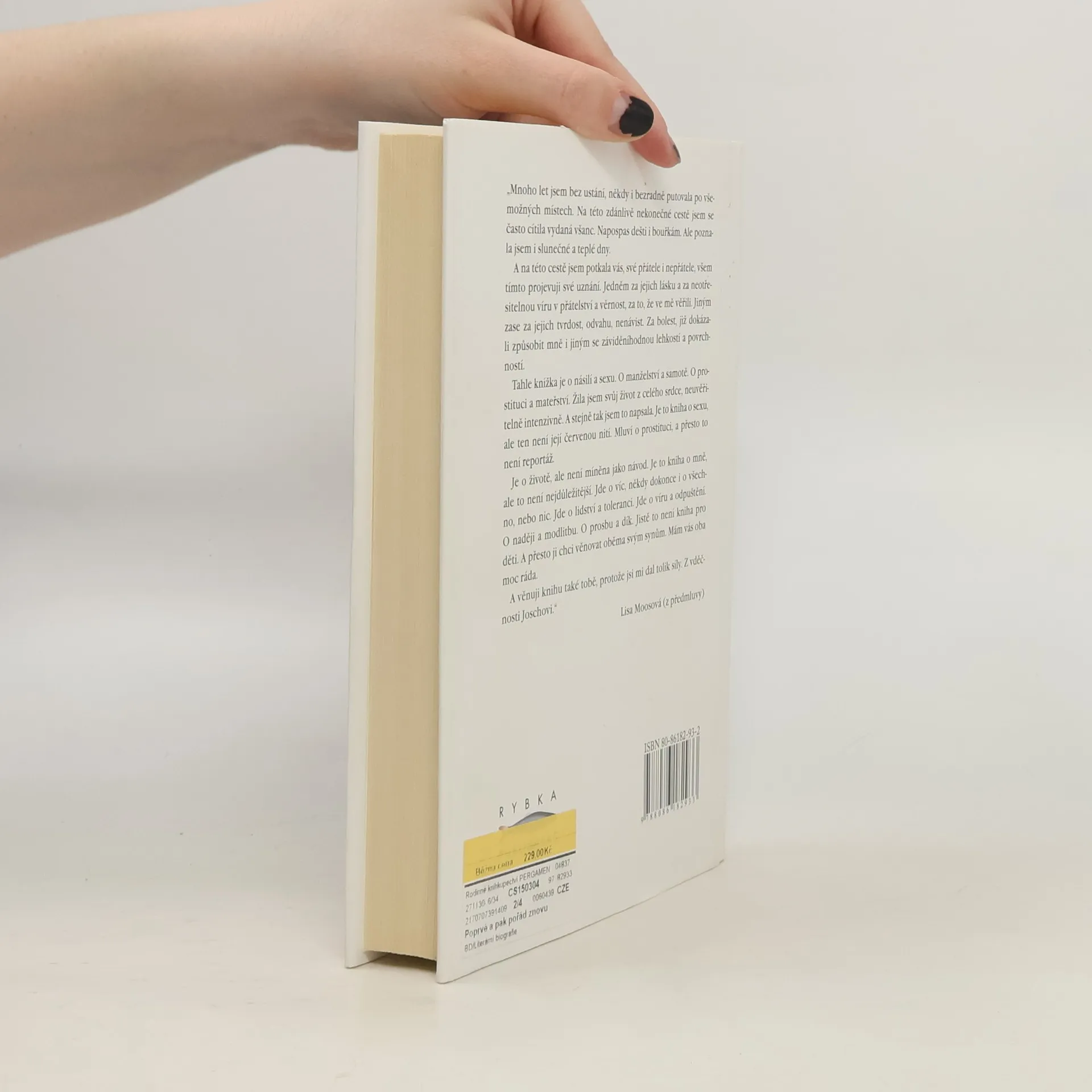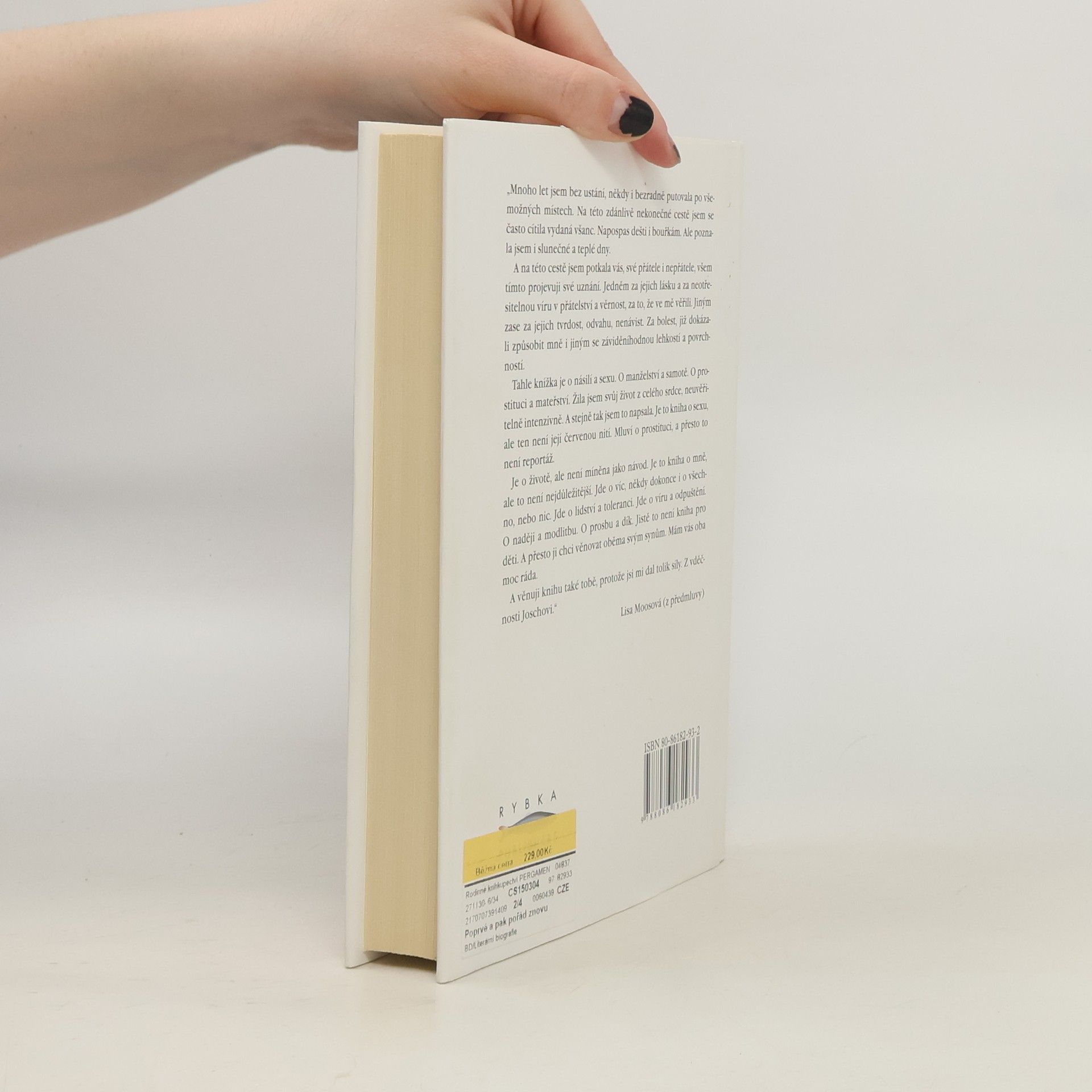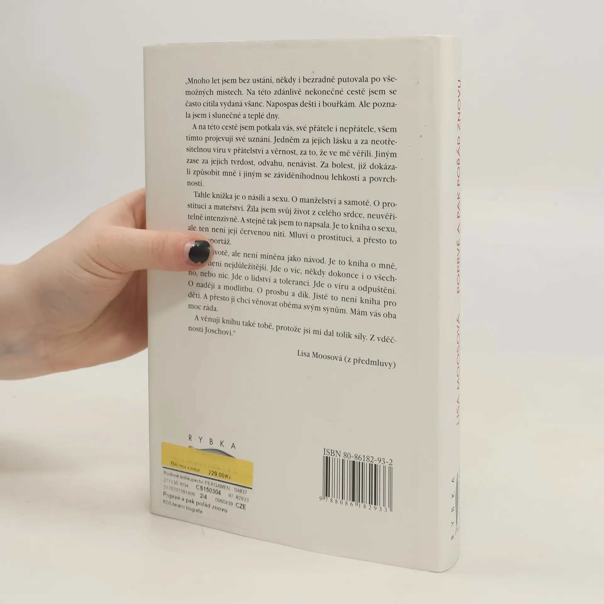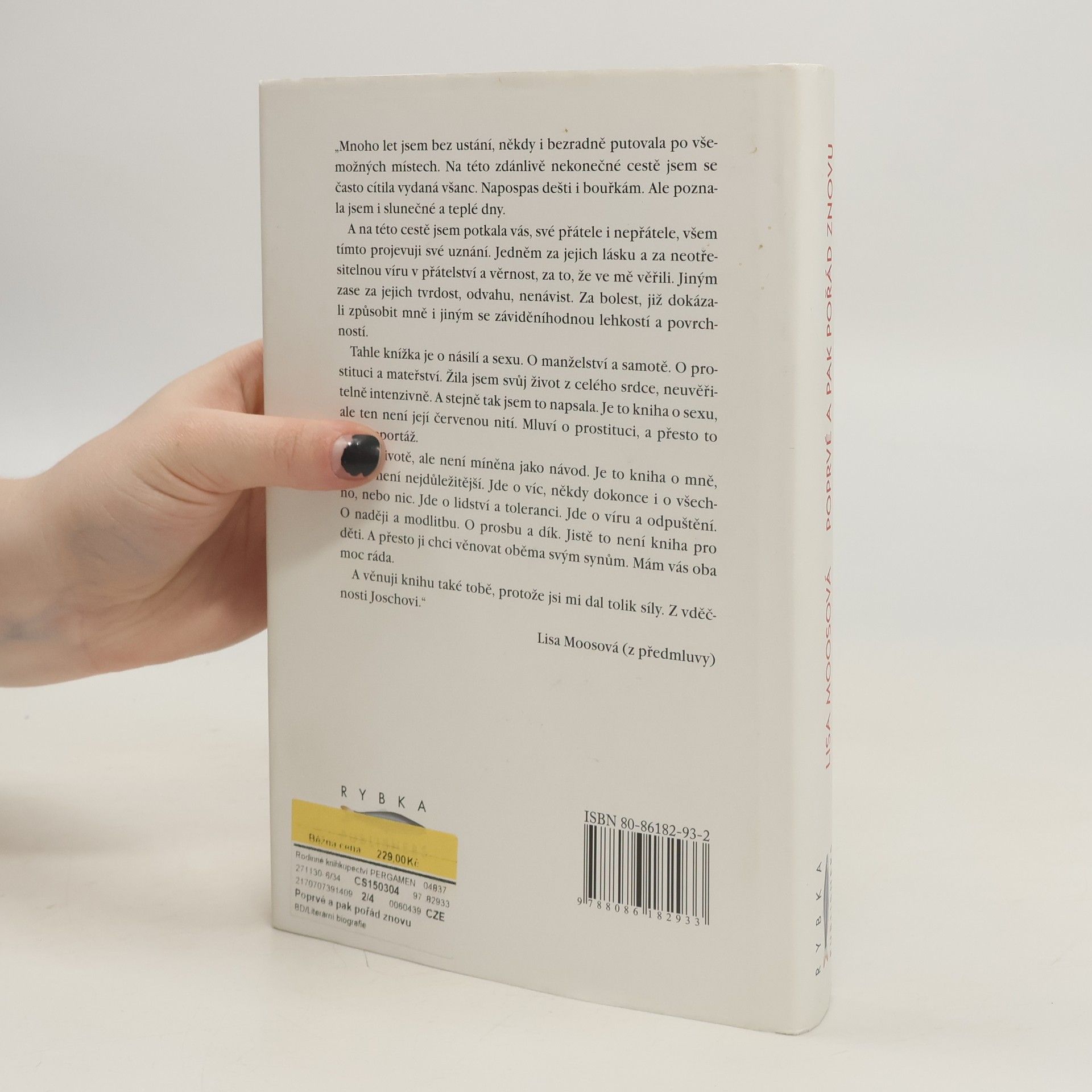 Když v květnu tohoto roku vyšla v Německu kniha Poprvé a pak pořád znovu, stala se okamžitě bestsellerem a její autorka rázem nejčtenější německou ženskou autorkou. Neobvykle otevřená výpověď Lisa Moosové, která se ve svých šestnácti letech ocitla ve světě prodejné lásky a která se nyní ve svých sedmatřiceti rozhodla vylíčit svůj mimořádně pohnutý osud, oslovila během jediného měsíce více než sedmdesát tisíc čtenářů. Přestože se autobiografický příběh Poprvé a pak pořád znovu odehrává převážně ve světě prostituce, jeho síla a čtenářská přitažlivost netkví pouze v otevřenosti líčení sexuálních scén, nýbrž i v lidskosti, odvaze a upřímnosti její autorky. Přes všechny pády, dramatické zvraty se Lisa Moosová nikdy nevzdala naděje a víry v opravdovou lásku, která jí jako ženu a matku provázela po celý život.